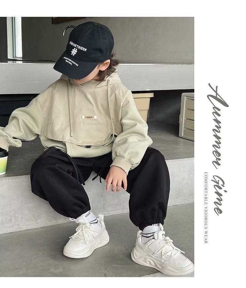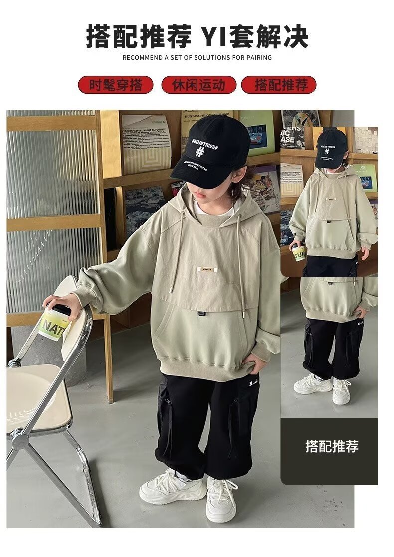 소년의 땀 2024 년 봄과 가을 새로운 어린이 가을 캐주얼 스포츠 후드 탑 가을 소년의 트렌디 브랜드