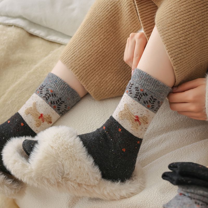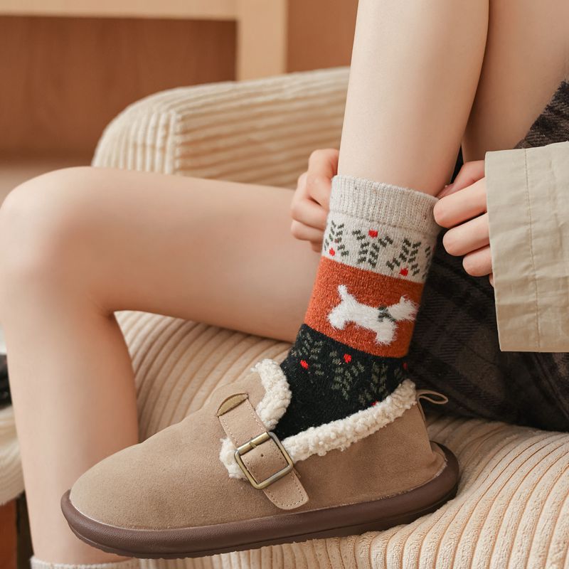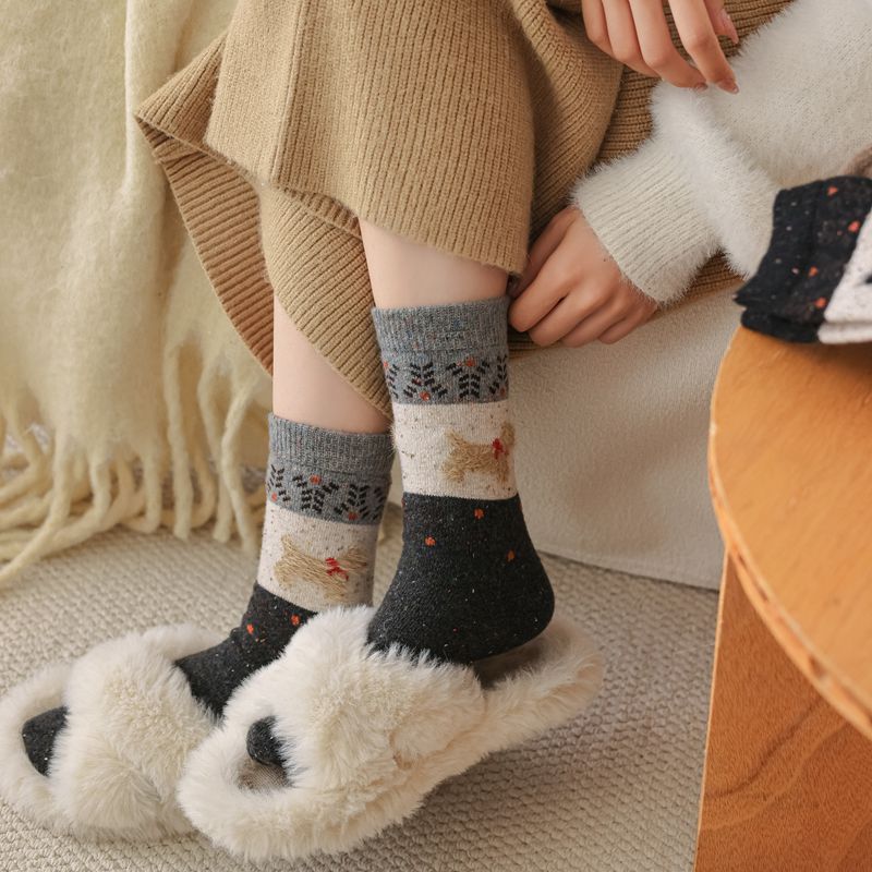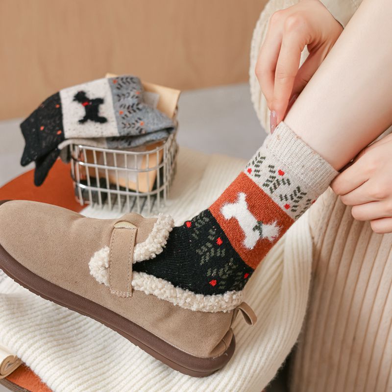 한국식 도트 원사 대비 만화 강아지 따뜻한 양말 도매 트렌드 성격 겨울 여성 양말 두꺼운스토어 가기