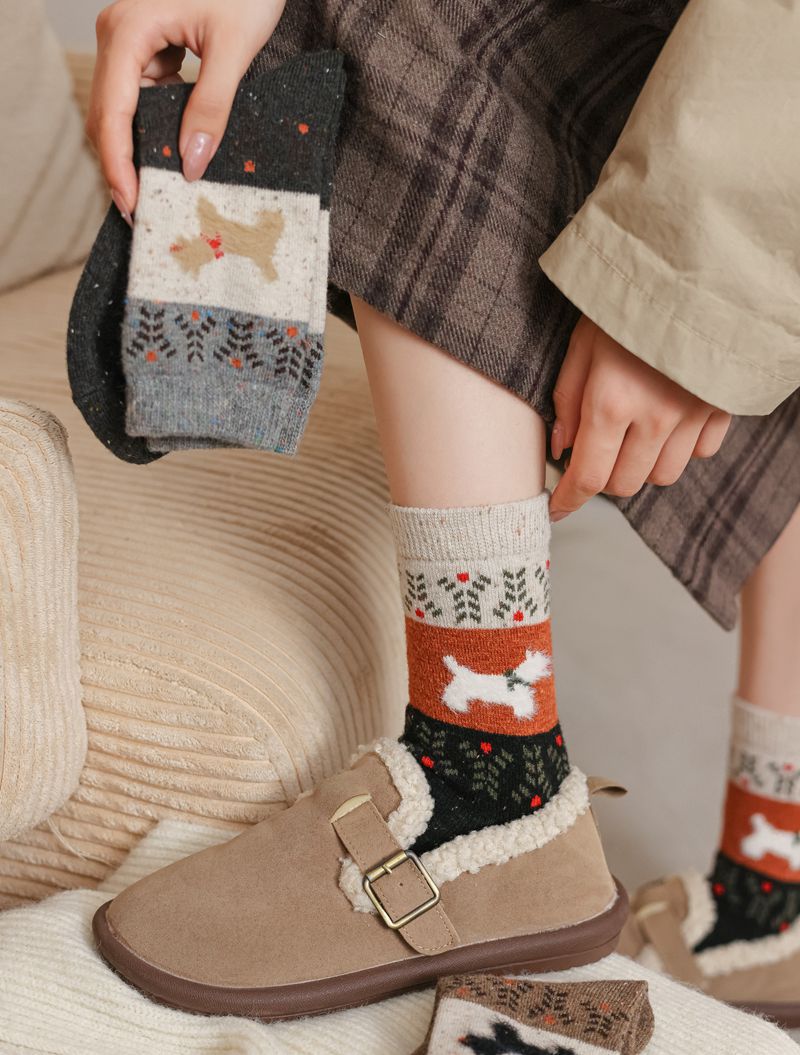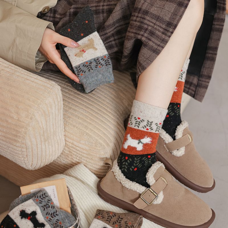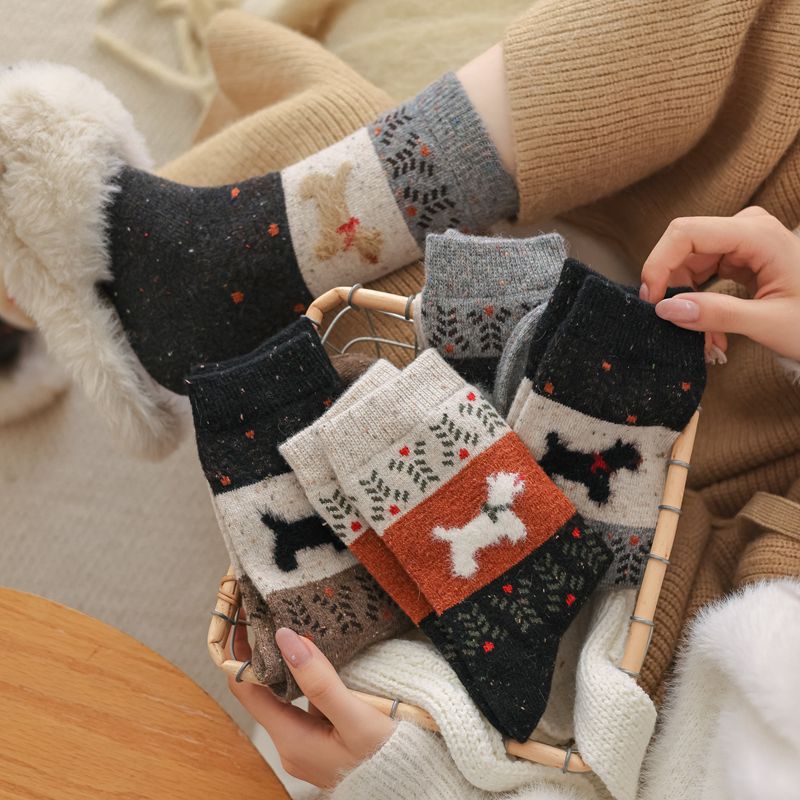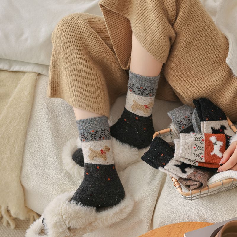 한국식 도트 원사 대비 만화 강아지 따뜻한 양말 도매 트렌드 성격 겨울 여성 양말 두꺼운