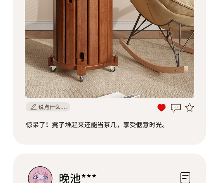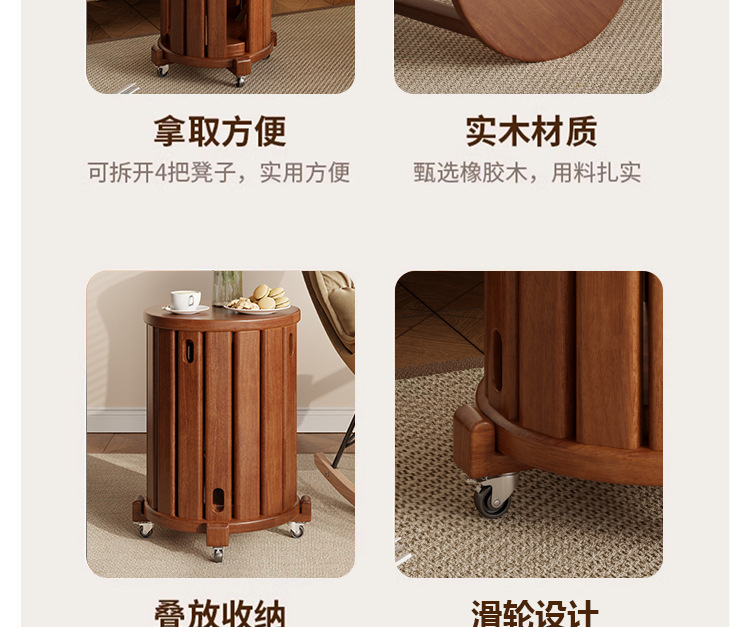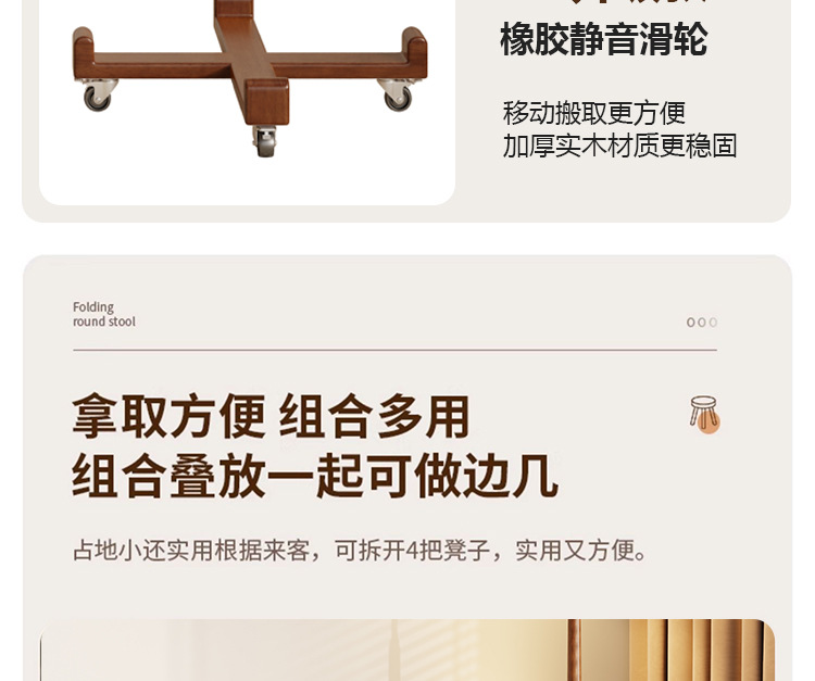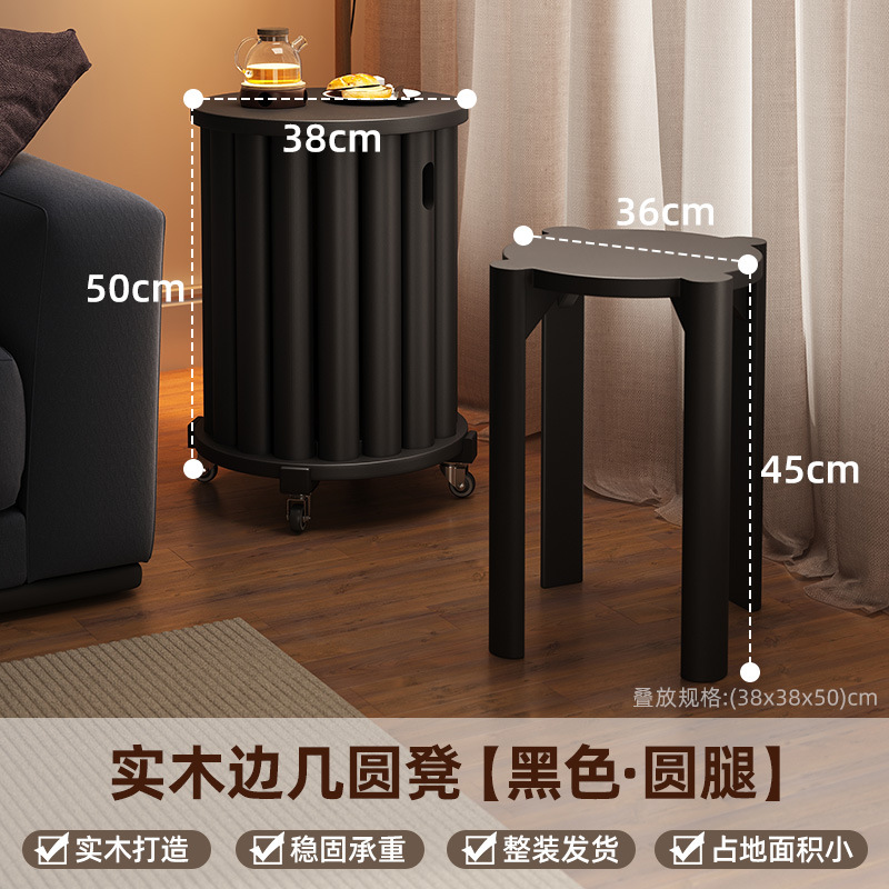 • 새롭게 업그레이드된 유니버셜 휠 모바일 모델 - 우드 컬러 - 쌓을 수 있는 원형 스툴(둥근 다리)