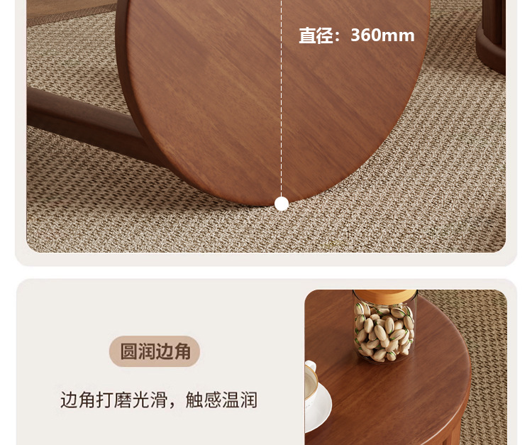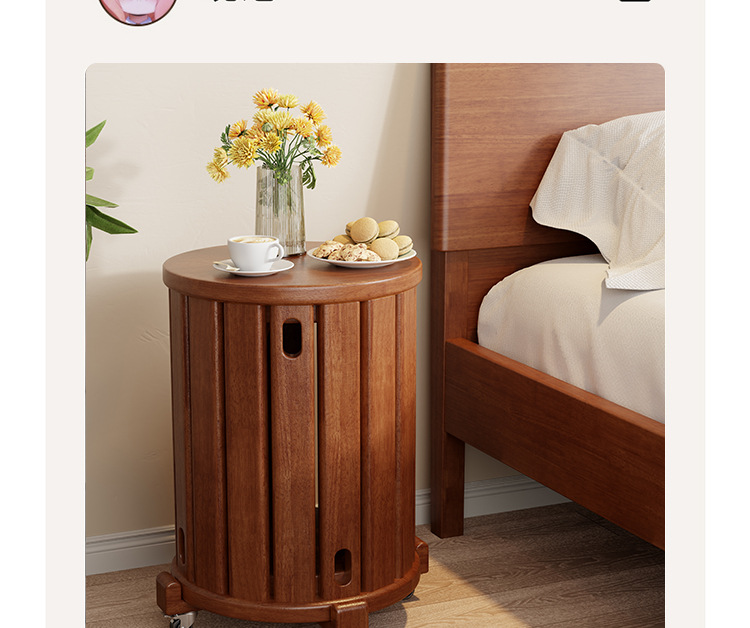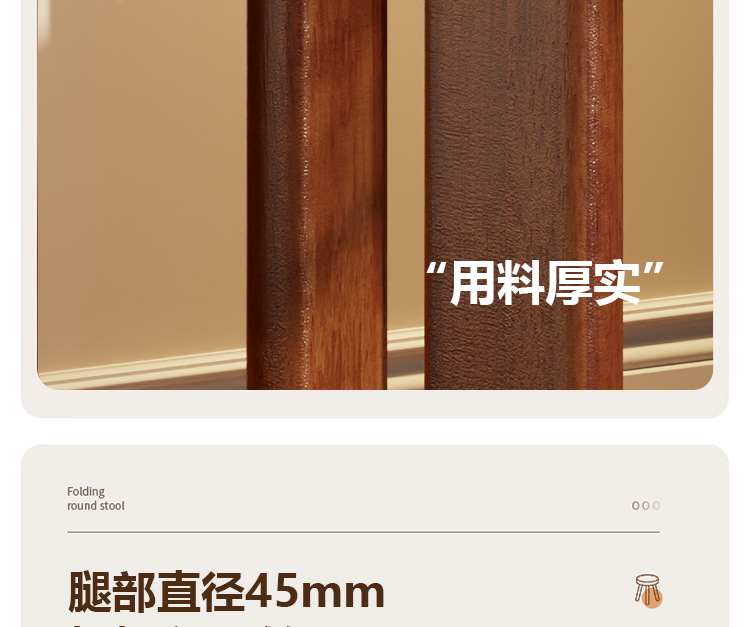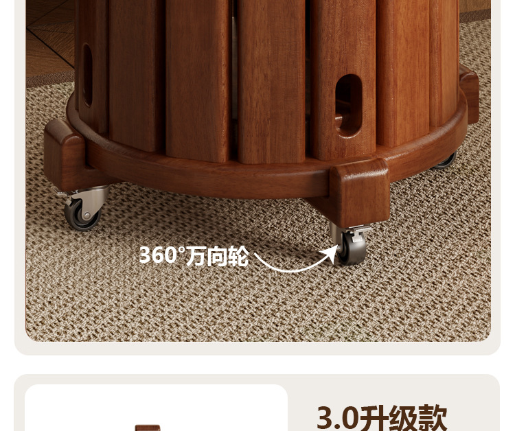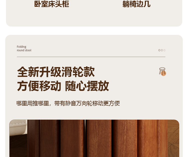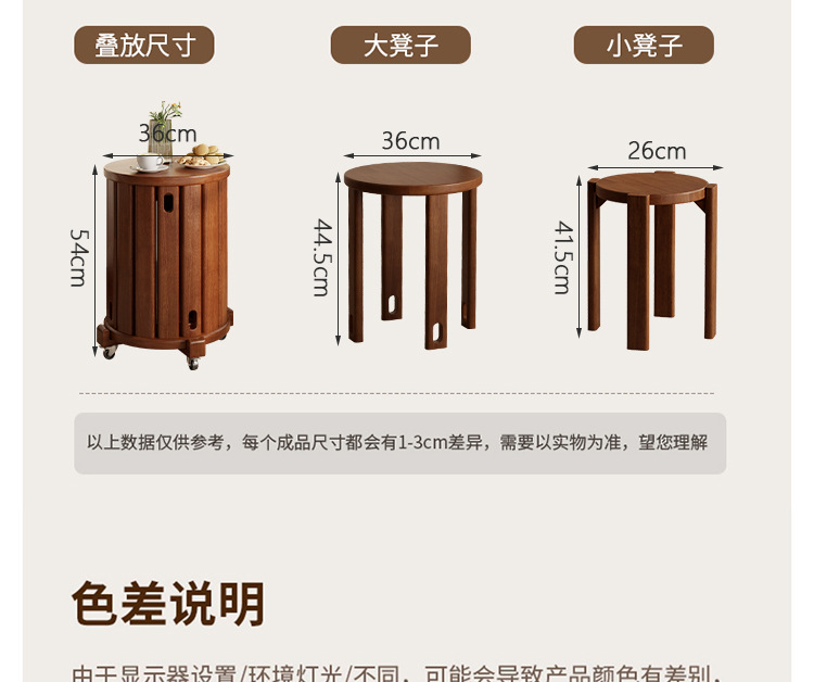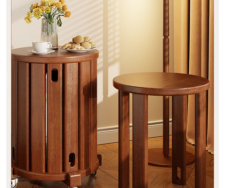 • 새롭게 업그레이드된 유니버셜 휠 모바일 모델 - 월넛 컬러 - 쌓을 수 있는 원형 스툴(둥근 다리)