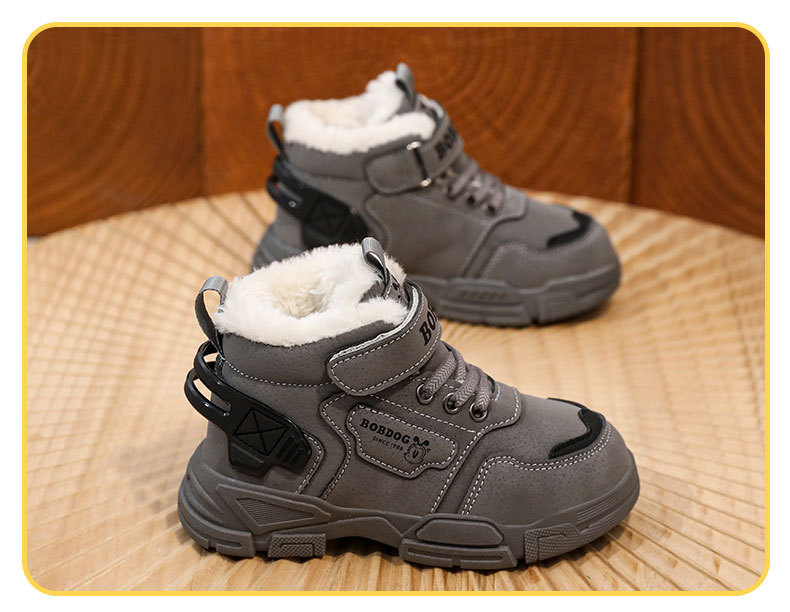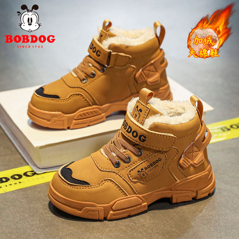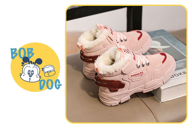 바부두 딸 신발 스노우 부츠 하이탑 겨울 신상품 플러스 벨벳 대형 면화 신발 가죽 방수 소년 캐주얼 신발