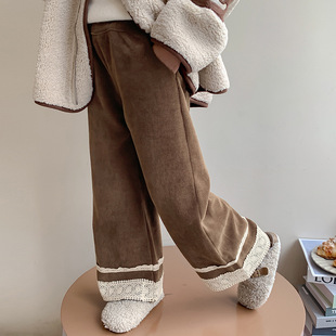 女童裤子春秋2024新款儿童秋装条绒直筒长裤中小童洋气宽松休闲裤