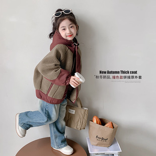 女童外套秋冬款2024新款洋气女孩冬装连帽上衣儿童装羊羔绒毛毛衣