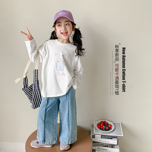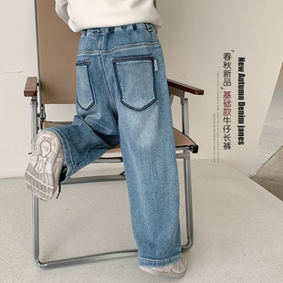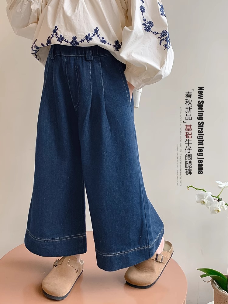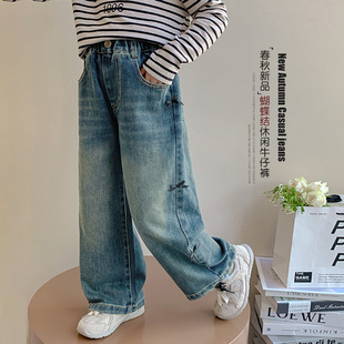 女童秋装牛仔裤2024新款早秋儿童直筒阔腿裤洋气女孩秋季韩版裤子