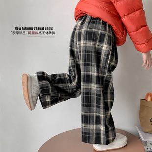 女童裤子秋款2024新款儿童秋冬格子休闲裤洋气小童秋装直筒阔腿裤