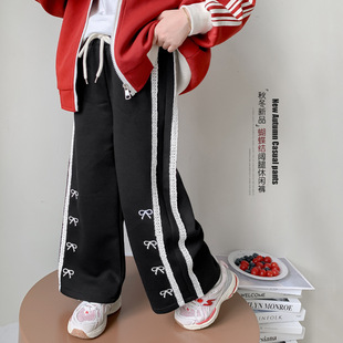 女童秋装裤子2024新款秋冬儿童洋气蝴蝶结直筒裤韩版秋季休闲长裤