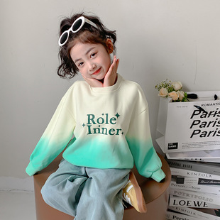 女童卫衣春秋款2024新款童装洋气女孩渐变上衣秋装儿童圆领套头衫