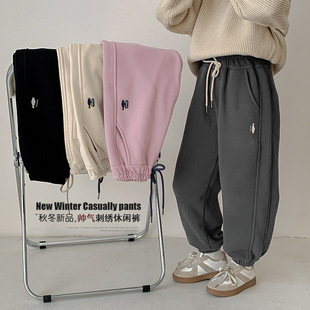 女童裤子秋冬2024新款儿童一体绒运动卫裤洋气加绒小童秋装休闲裤