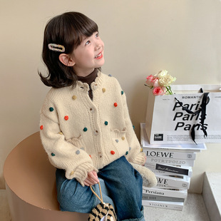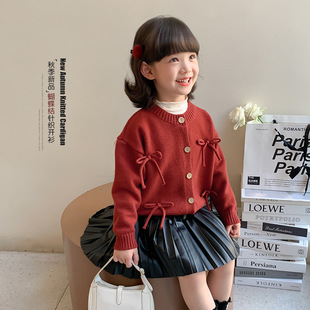 女童针织外套秋装2024新款韩版儿童洋气童装上衣秋季女孩开衫毛衣