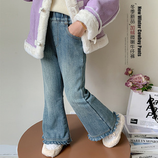 女童牛仔裤秋冬款2024新款儿童冬季一体绒裤子洋气冬装休闲喇叭裤