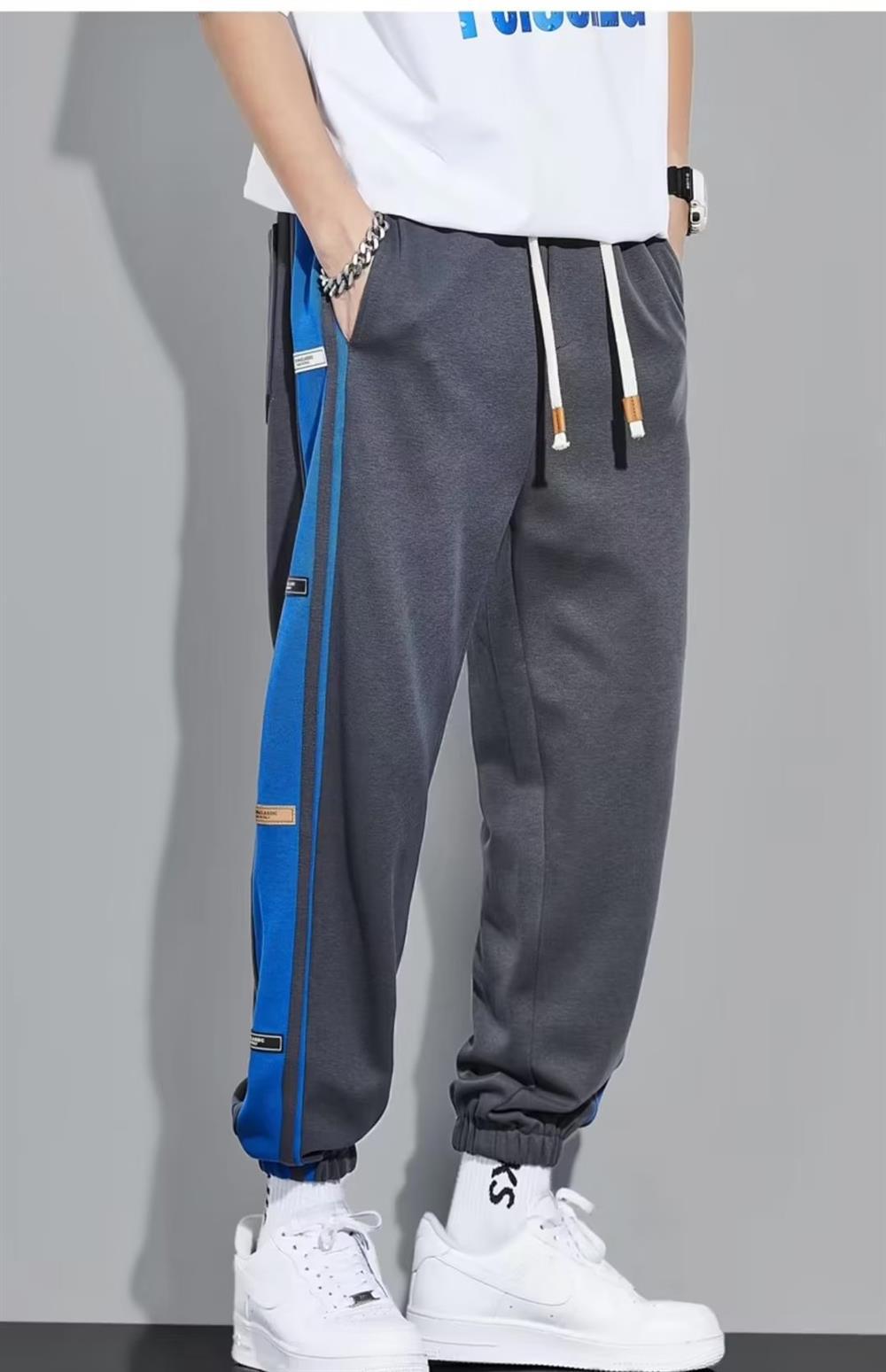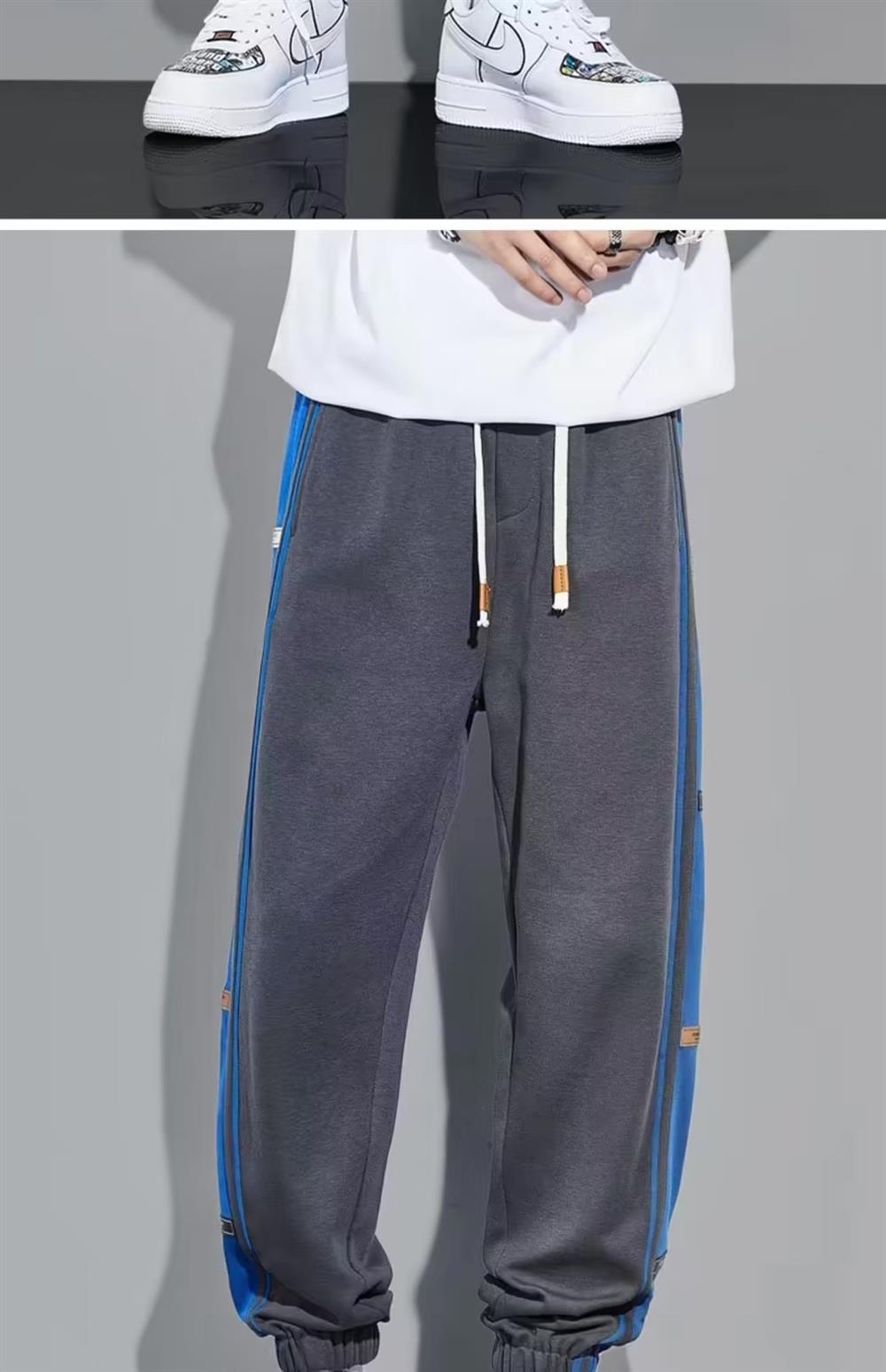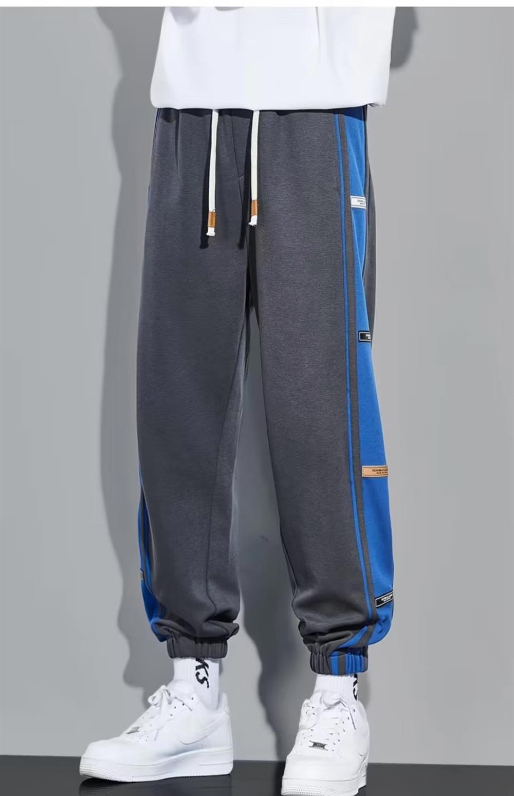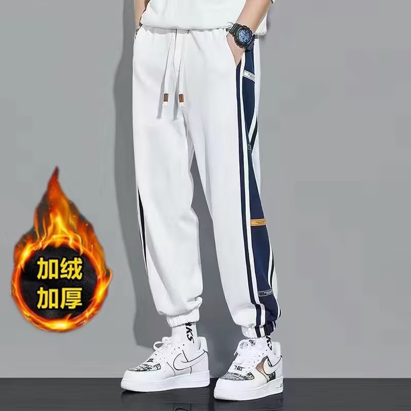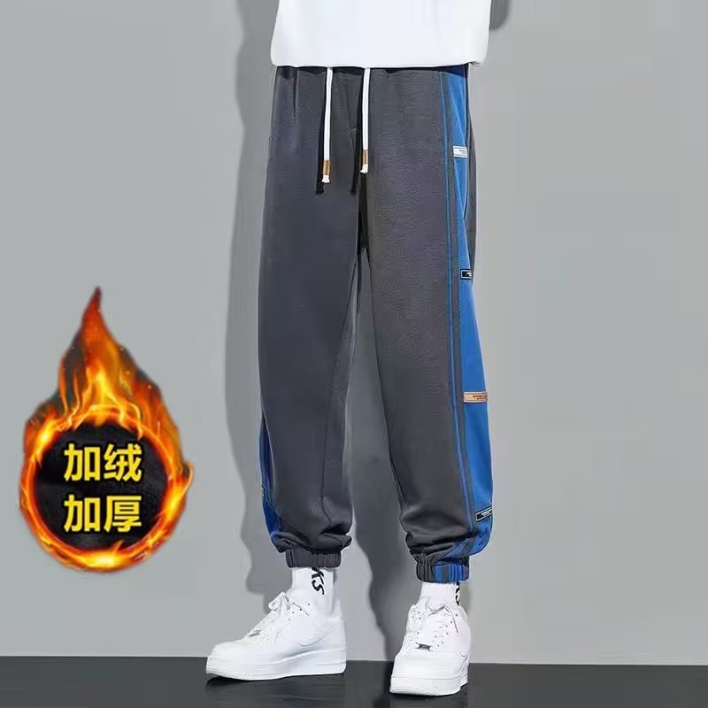 가을과 겨울 소년을위한 새로운 기모 캐주얼 바지 홍콩 스타일 느슨한 플러스 사이즈 스포츠 다리 십대 트렌디 올매치