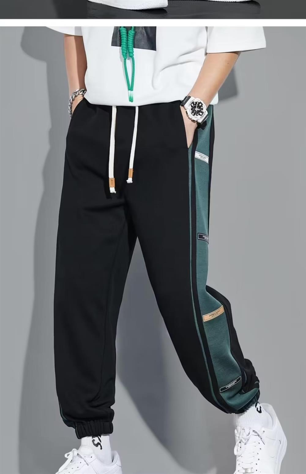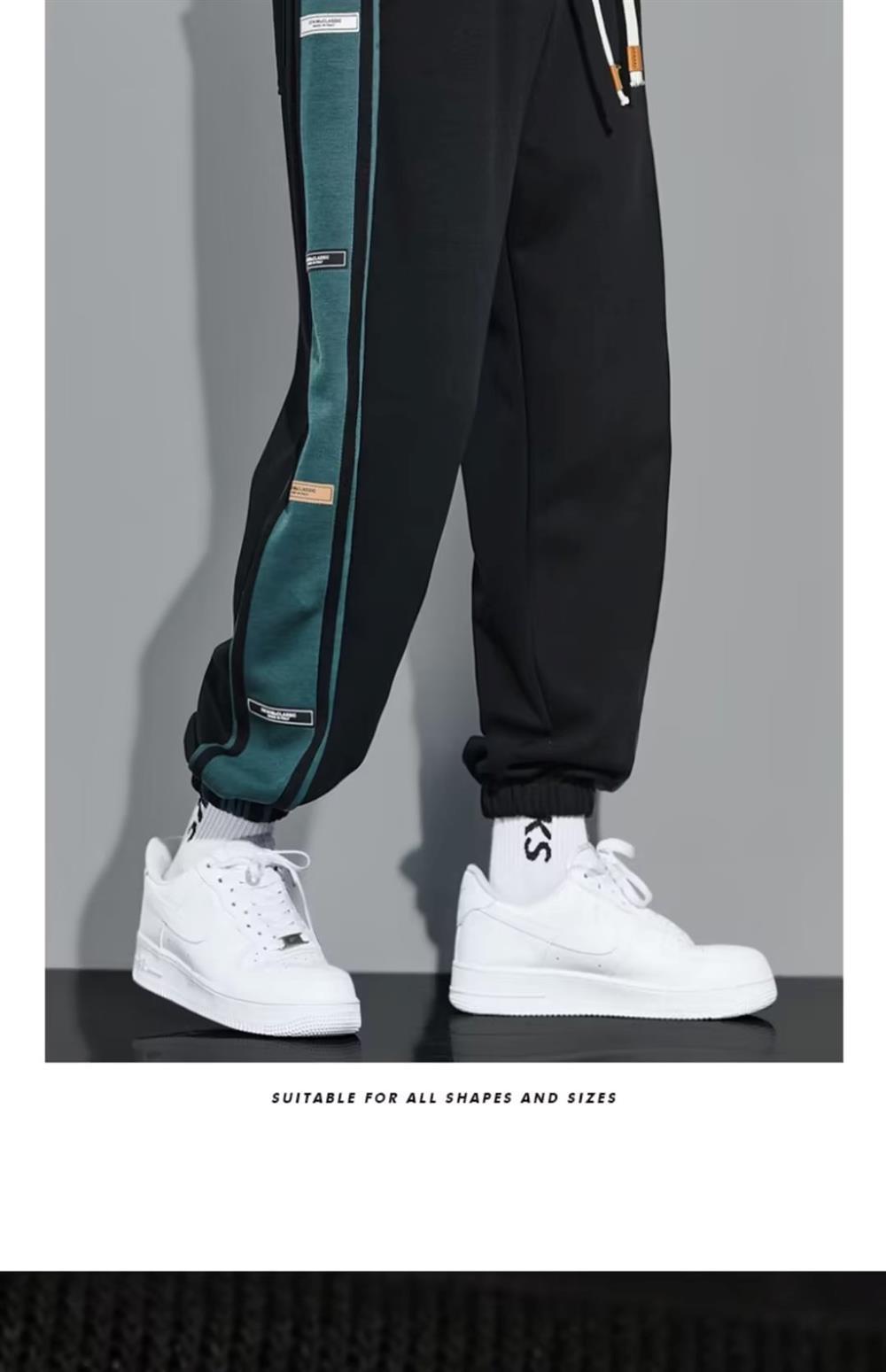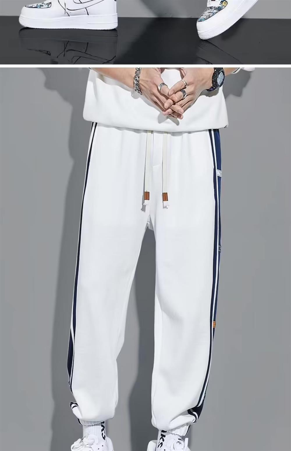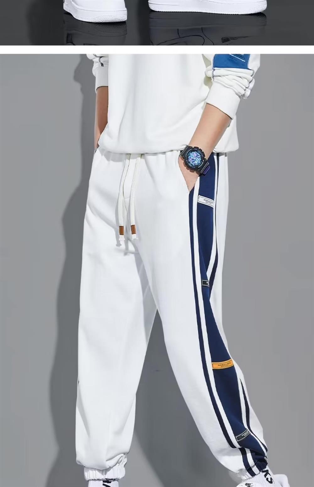 가을과 겨울 소년을위한 새로운 기모 캐주얼 바지 홍콩 스타일 느슨한 플러스 사이즈 스포츠 다리 십대 트렌디 올매치