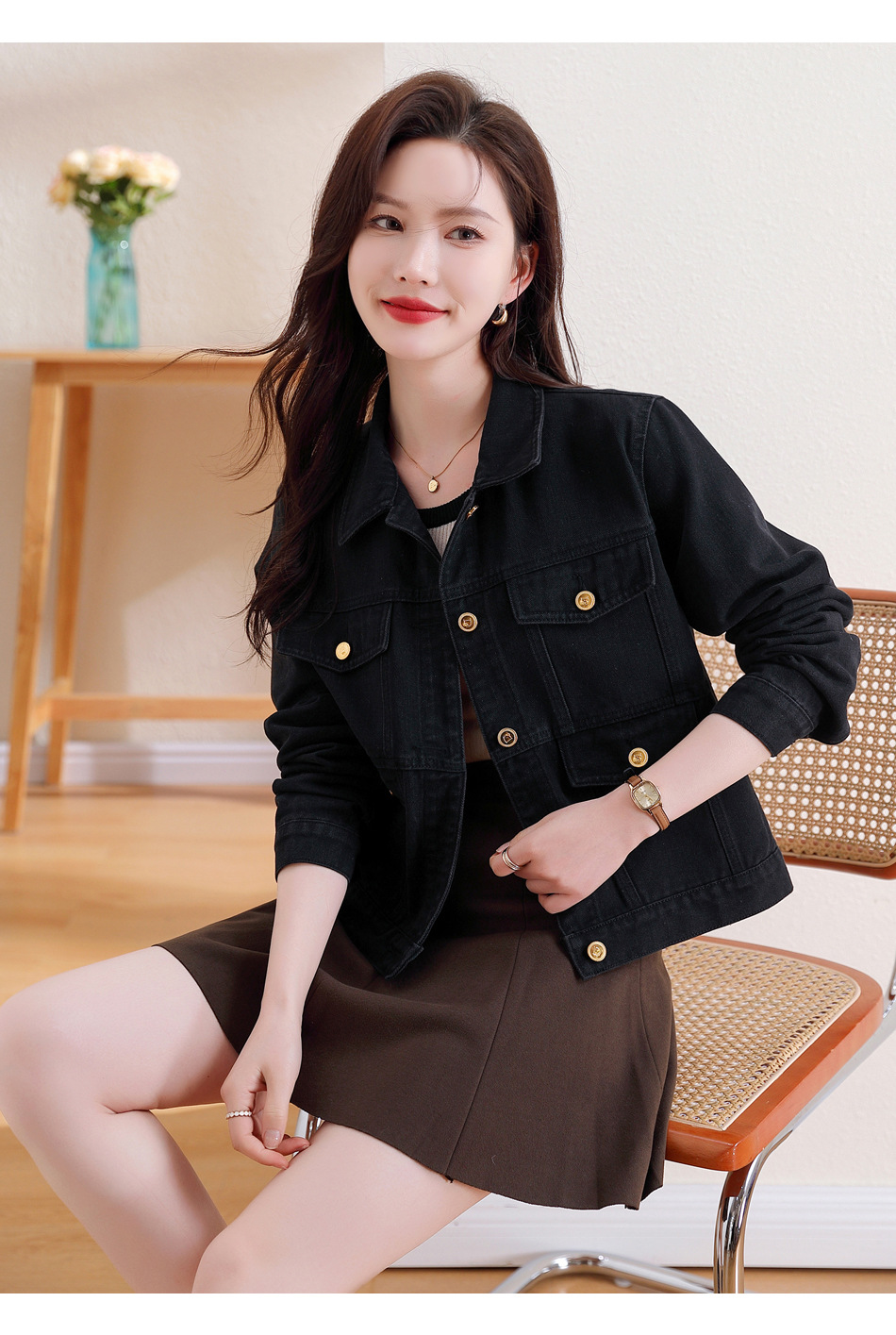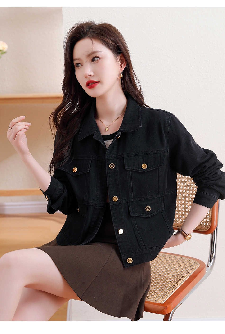 블랙 레트로 홍콩 스타일 쇼트 데님 재킷 여자 겨울 루즈 캐주얼 올 매치 재킷 작은 트렌디 탑