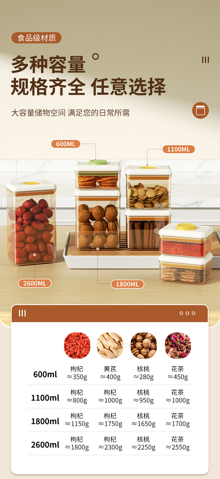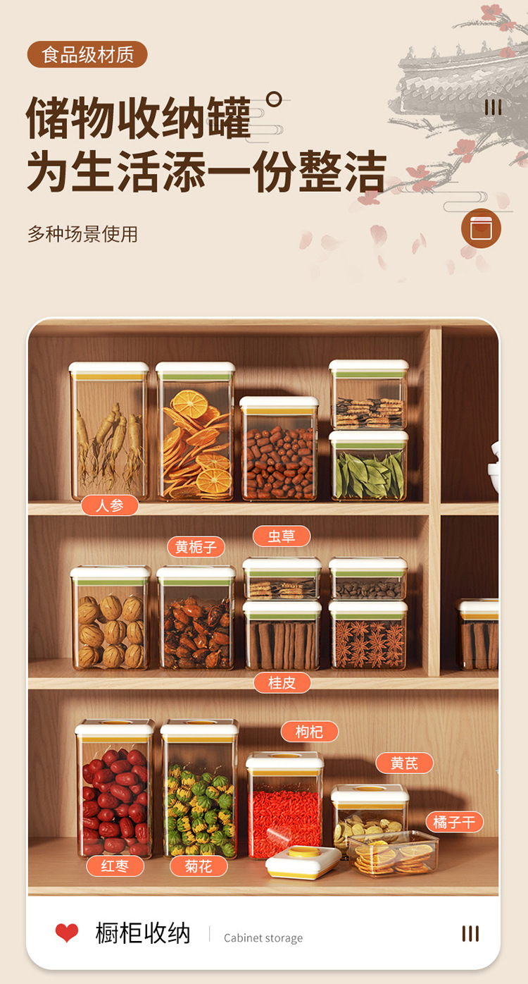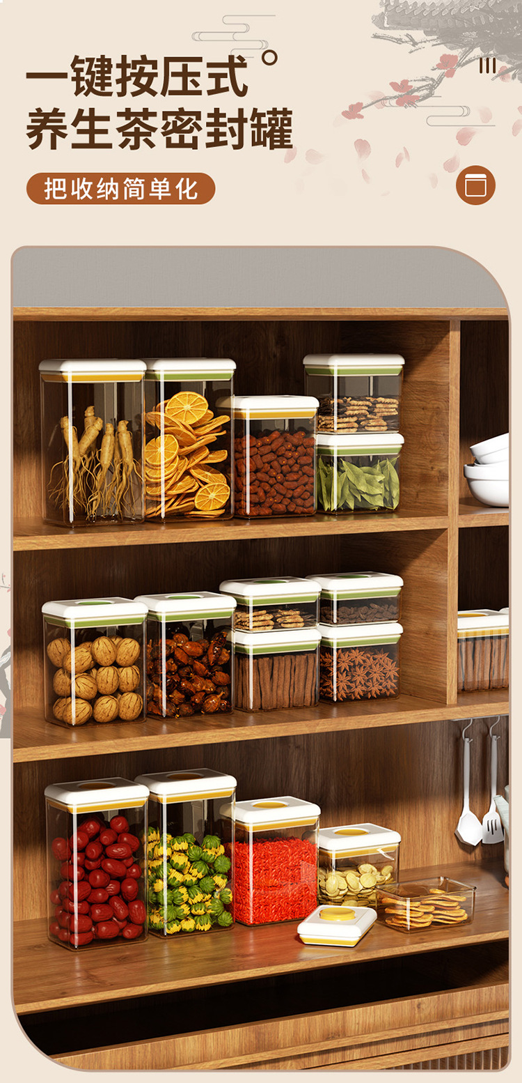 프레스 밀봉 된 항아리 차 저장 상자 거친 곡물 스낵 식품 학년 플라스틱 주방 보관 항아리 차 항아리