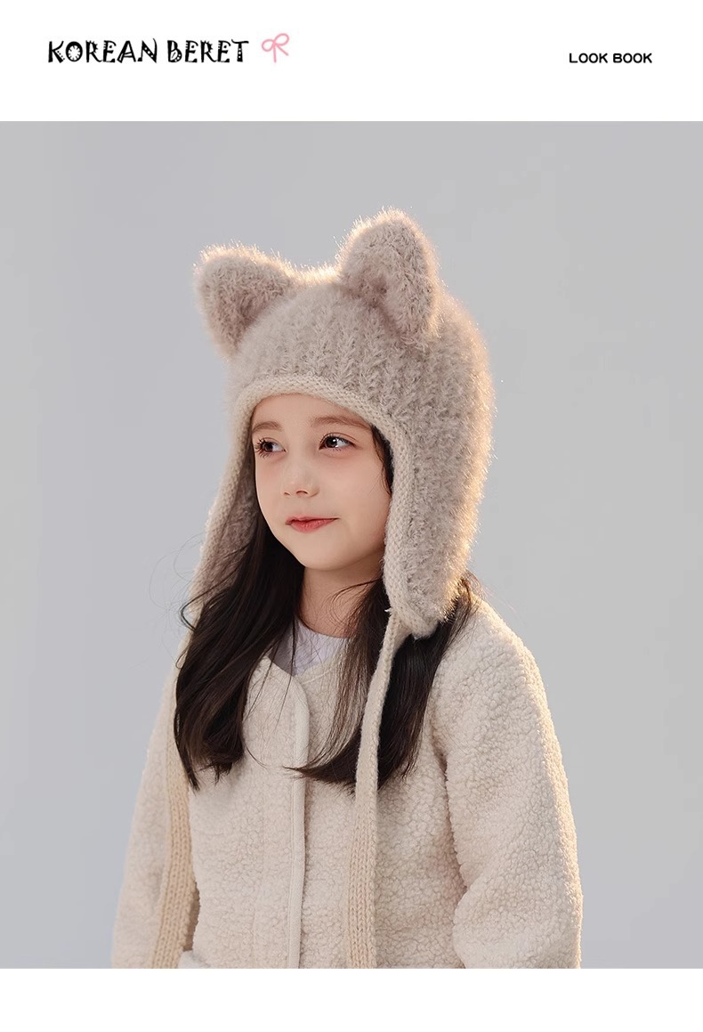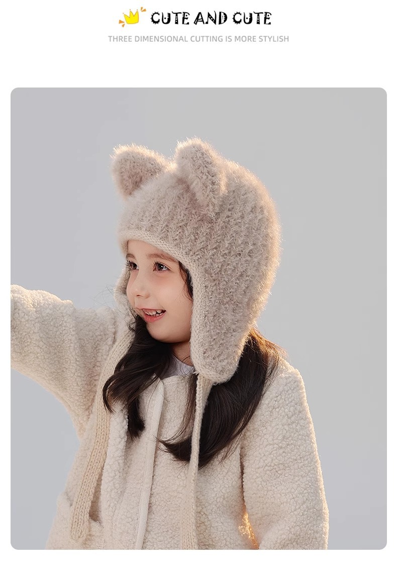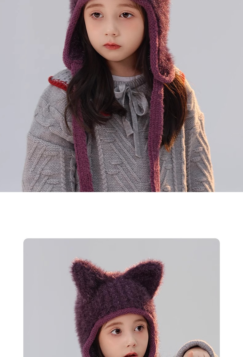어린이 모자 봉제 풀오버 캡 소녀와 소년 2024 가을과 겨울 새로운 감기 방지 아기 따뜻한 니트 배깅 캡스토어 가기