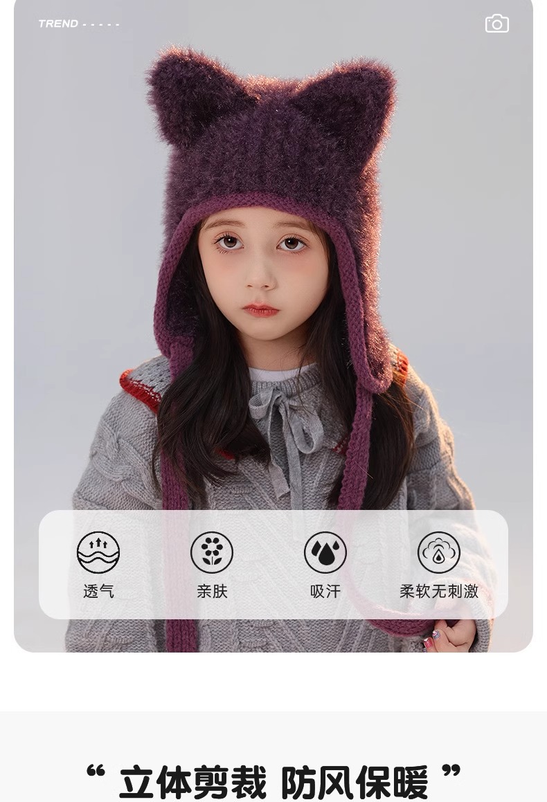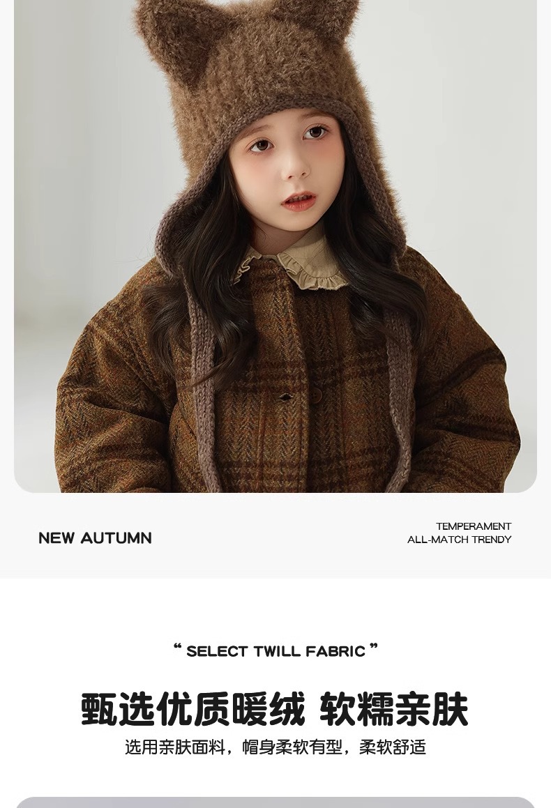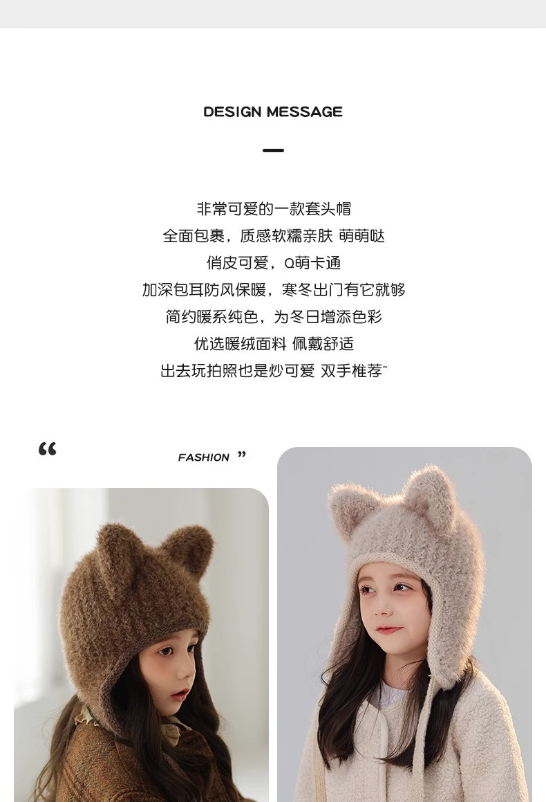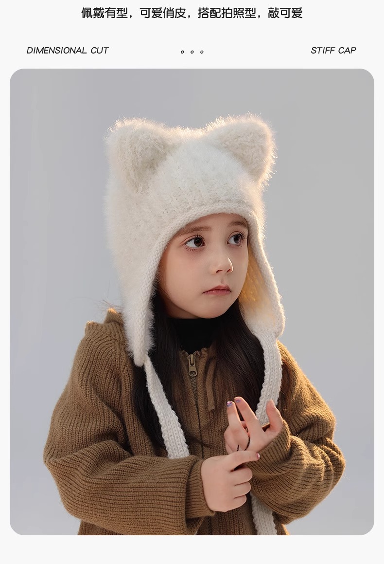 어린이 모자 봉제 풀오버 캡 소녀와 소년 2024 가을과 겨울 새로운 감기 방지 아기 따뜻한 니트 배깅 캡스토어 가기
