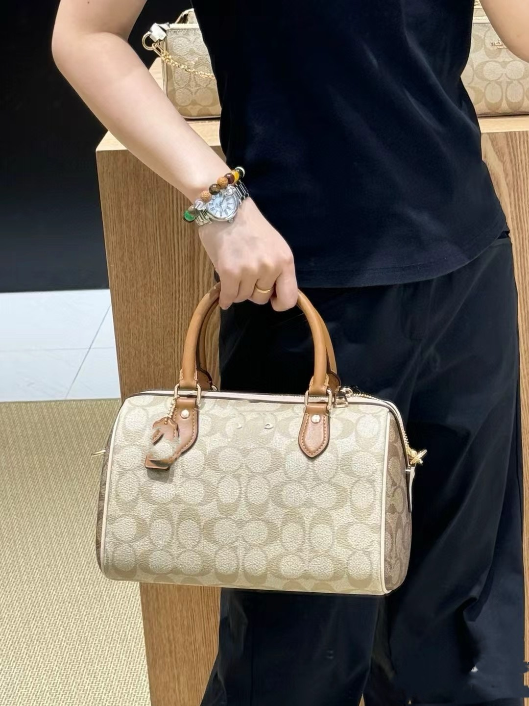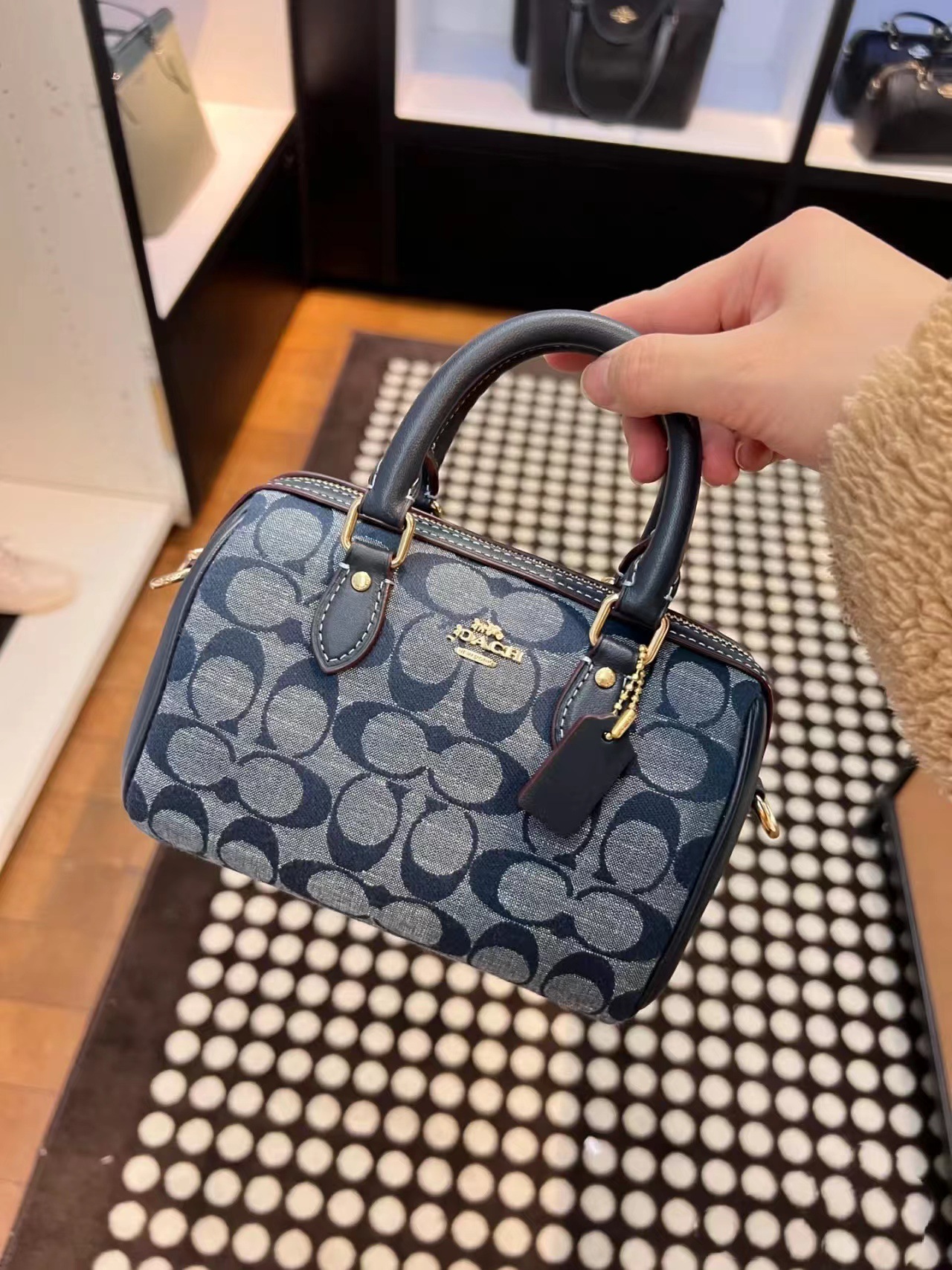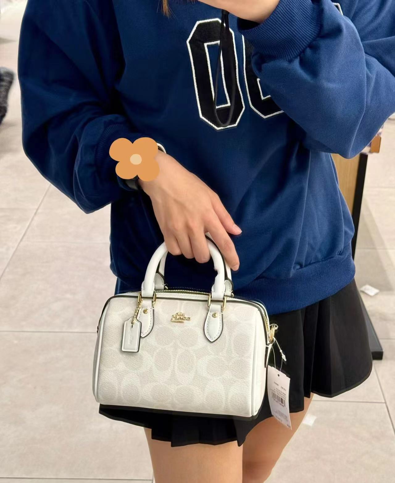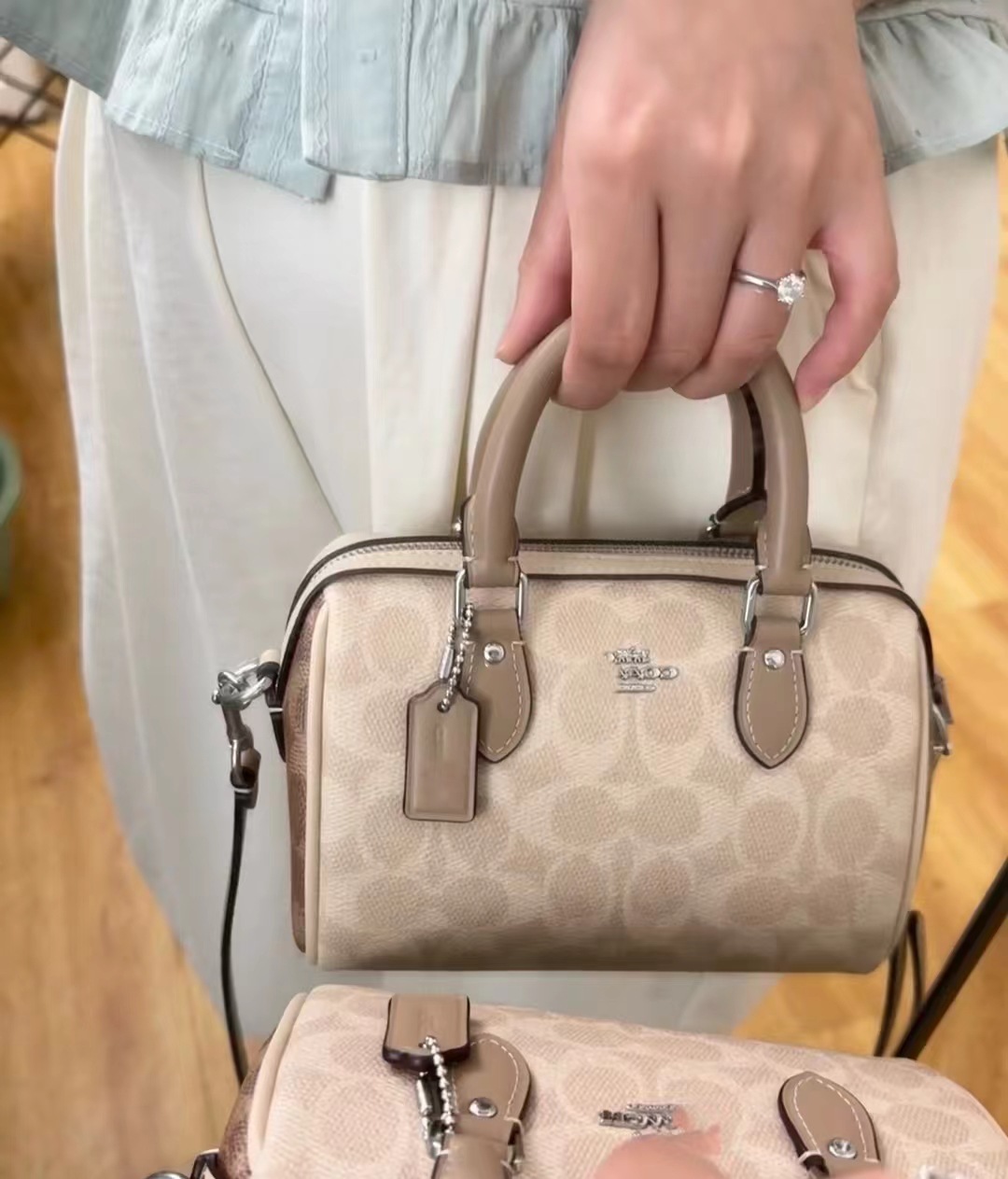 쿠의 새로운 로완 클래식 올드 플라워 보스턴 베개 가방 미니 핸드백 클래식 올드 플라워 크로스 바디 여성용 가방스토어 가기