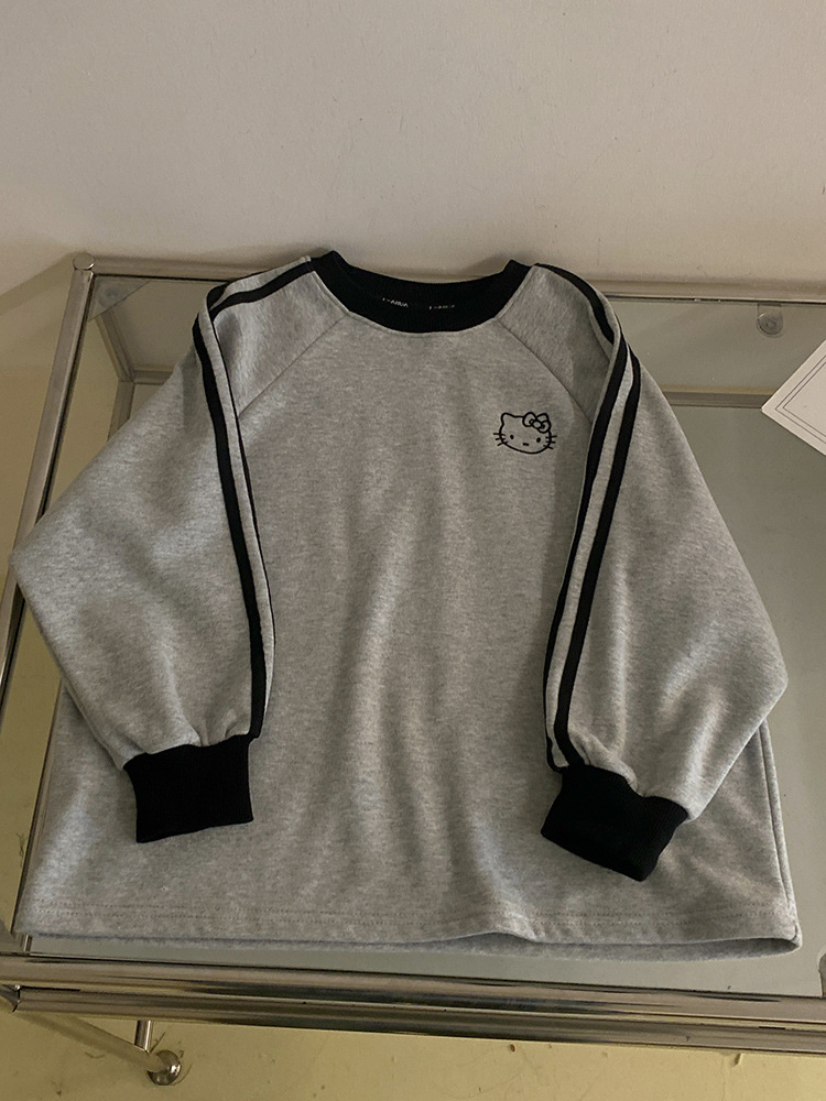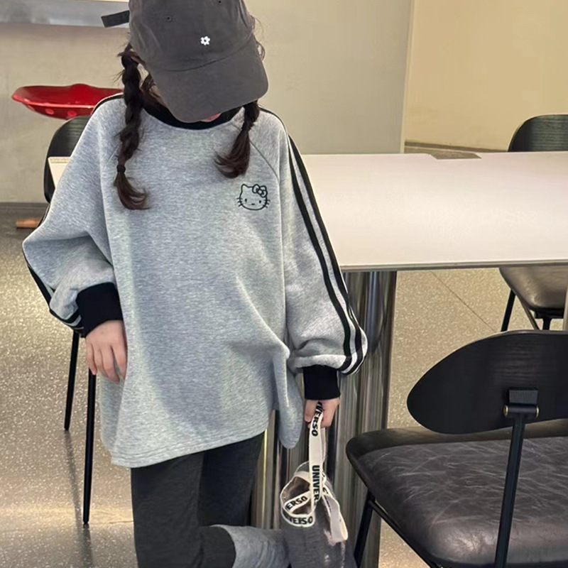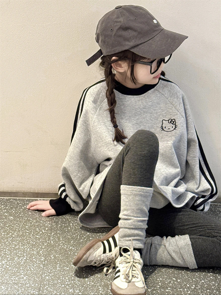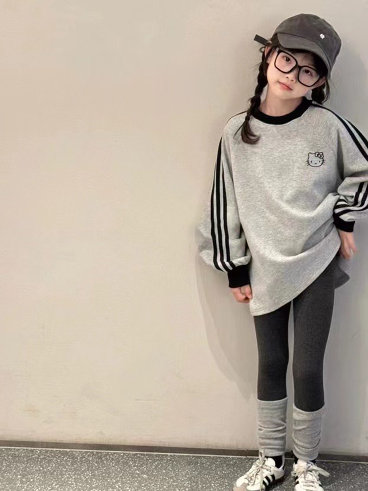 스포츠 스타일 세트 2024 가을 겨울 새로운 3 바 KT 고양이 기모 스웨터 서양식 조커 레깅스 아동복 조수스토어 가기