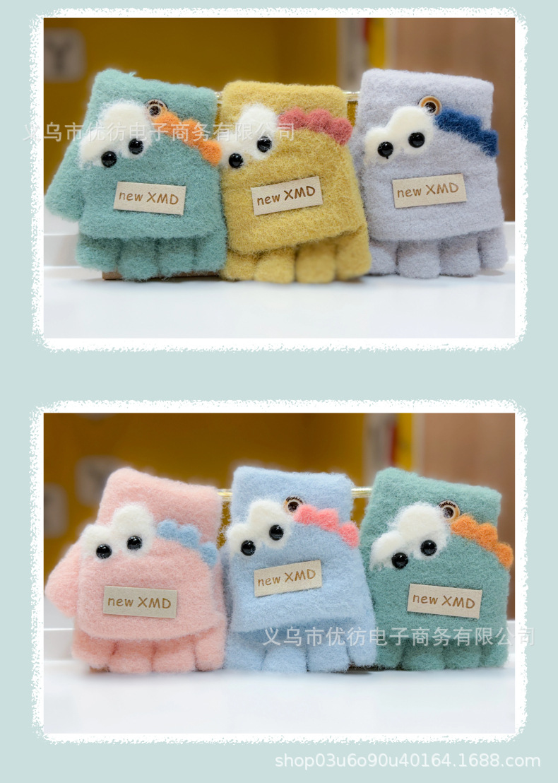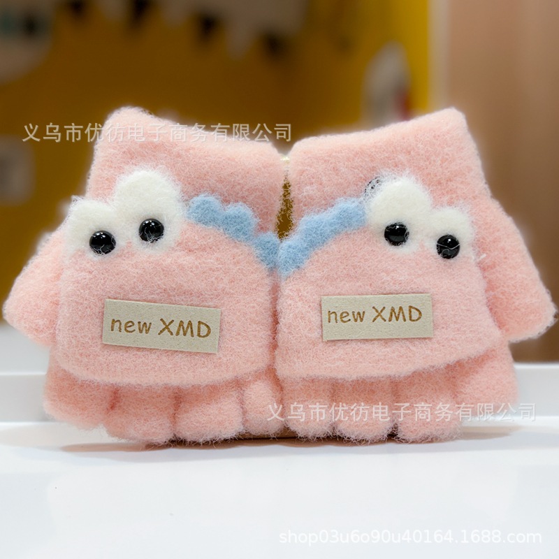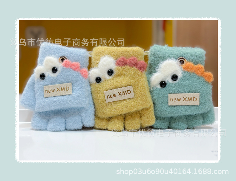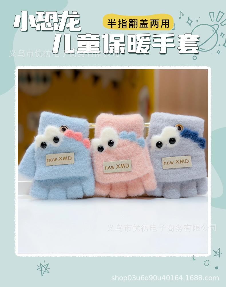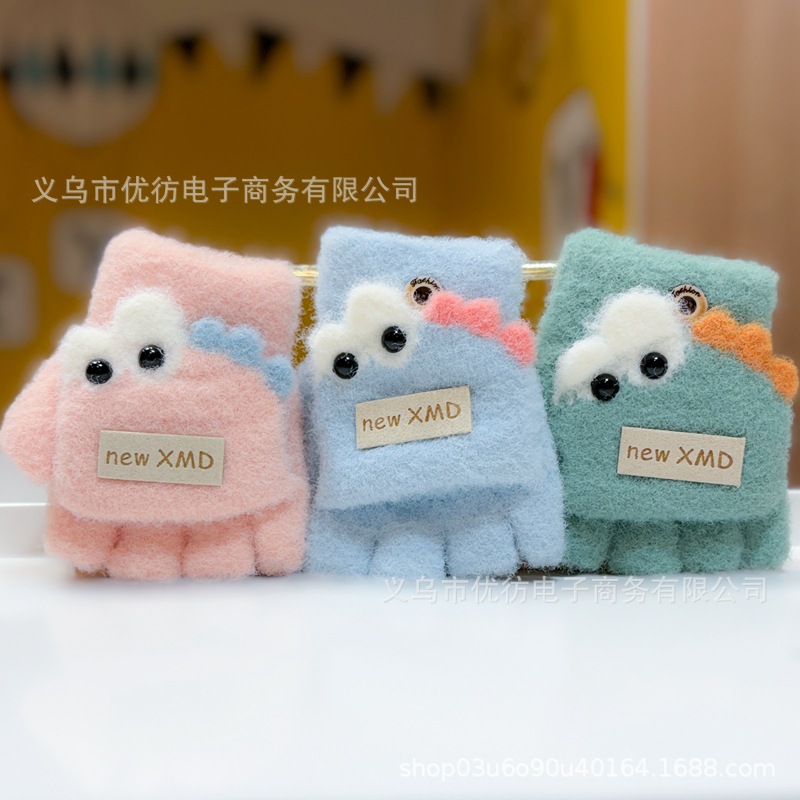 아기의 장갑 가을과 겨울 소년과 소녀 만화 공룡 방풍 따뜻한 두꺼운 반 손가락 어린이 플립 방한 손가락스토어 가기