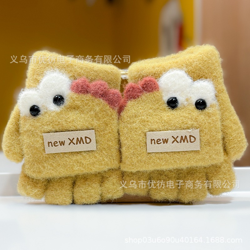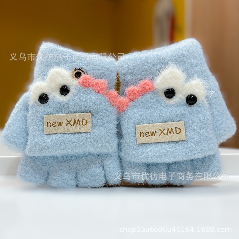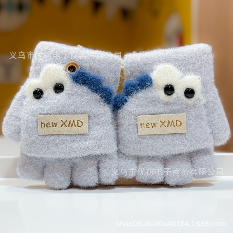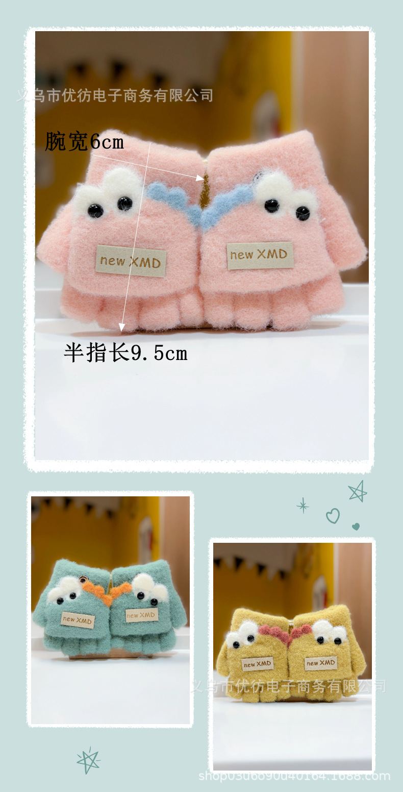 아기의 장갑 가을과 겨울 소년과 소녀 만화 공룡 방풍 따뜻한 두꺼운 반 손가락 어린이 플립 방한 손가락스토어 가기