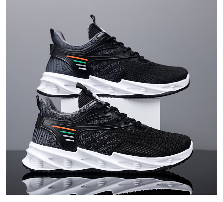 블레이드 대형 신발, 플라이 니트 남성 신발, 패셔너블한 한국 스타일 스포츠 통기성 신발, 젊은 남성을 위한 다재다능한 캐주얼 물고기 비늘 메쉬 신발