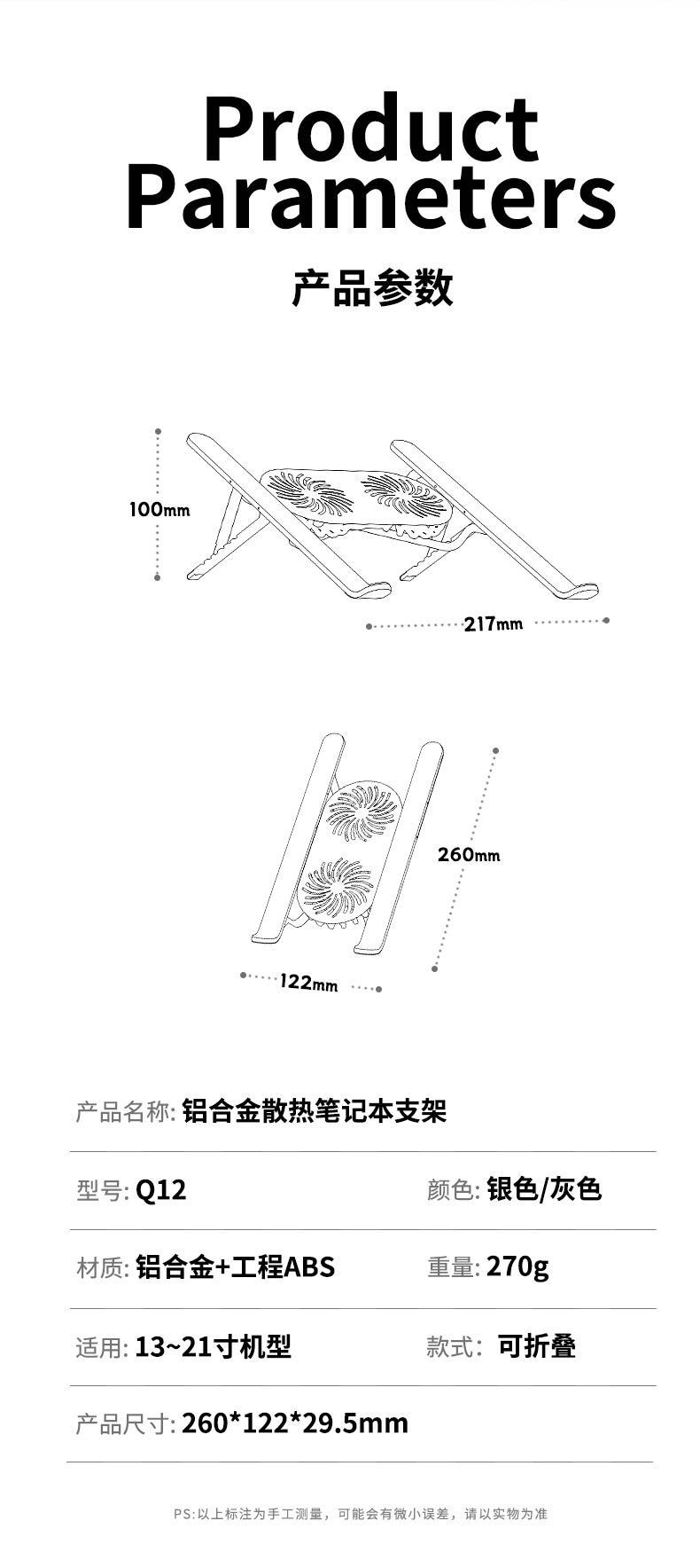 • 알루미늄 합금 컴퓨터 스탠드-[팬과 조명으로 열 방출을 720회전할 수 있음]-회색