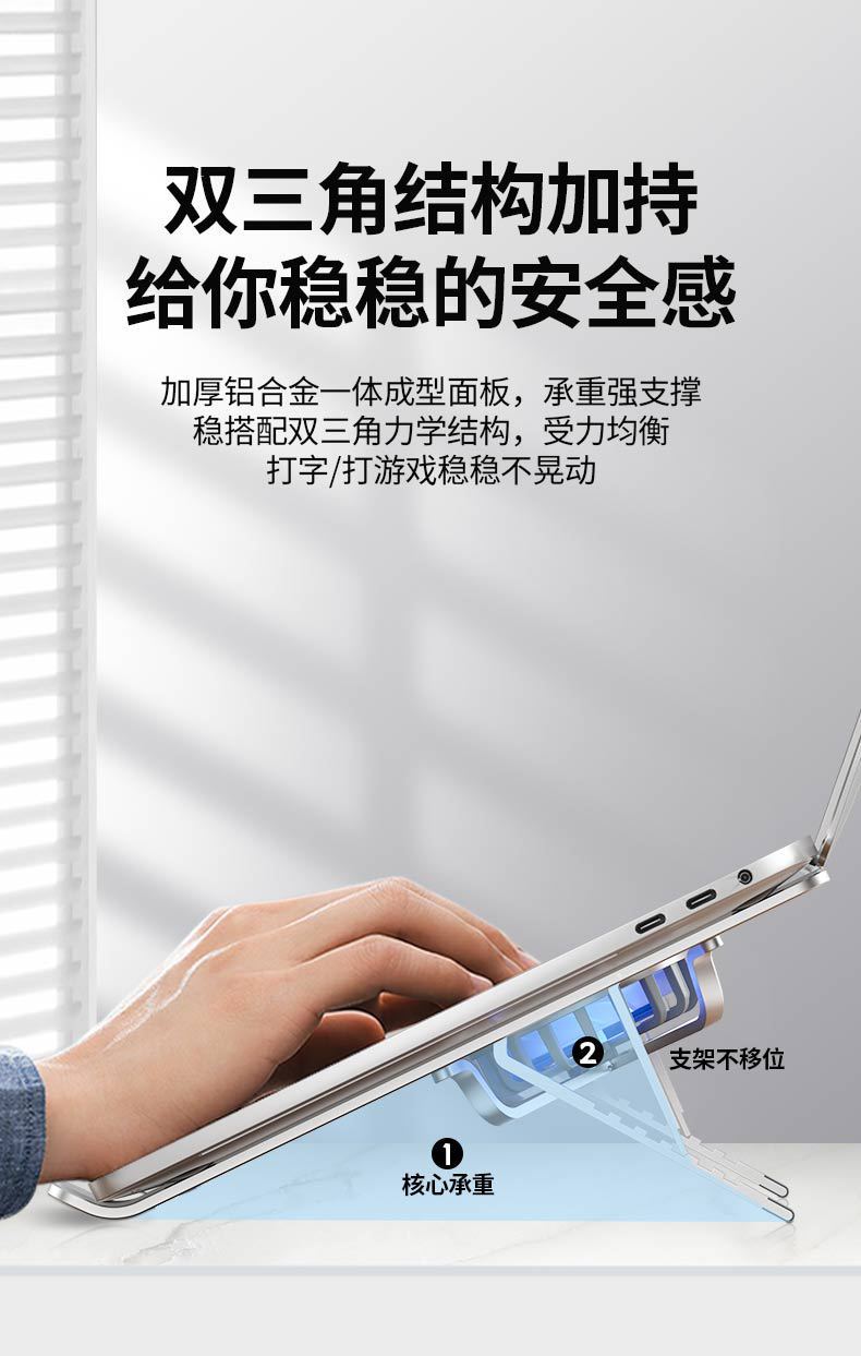 • 알루미늄 합금 컴퓨터 브래킷 [팬과 조명이 720 회전하여 열 방출 가능] 실버