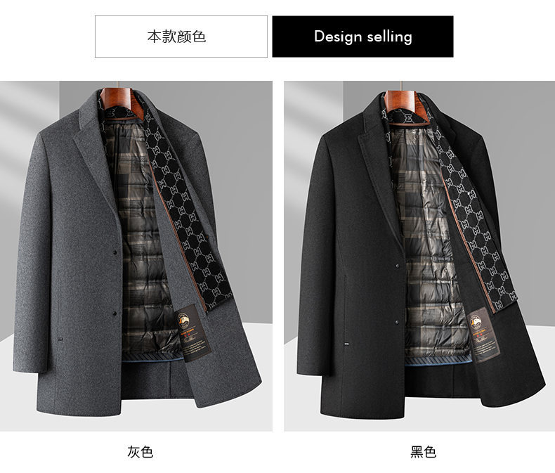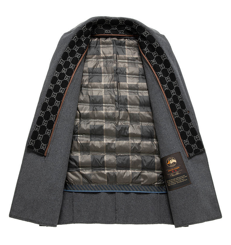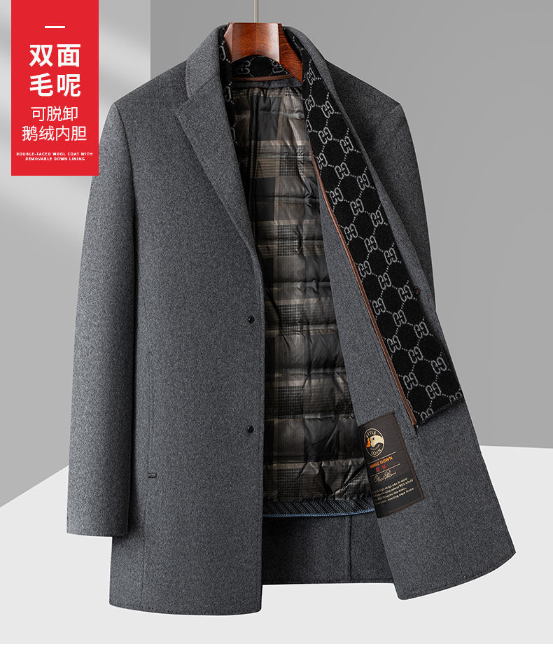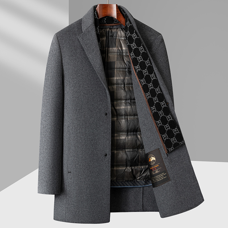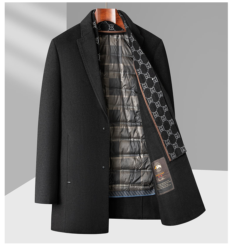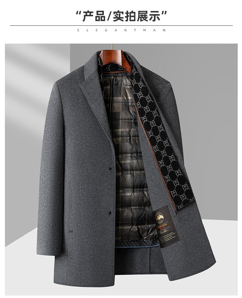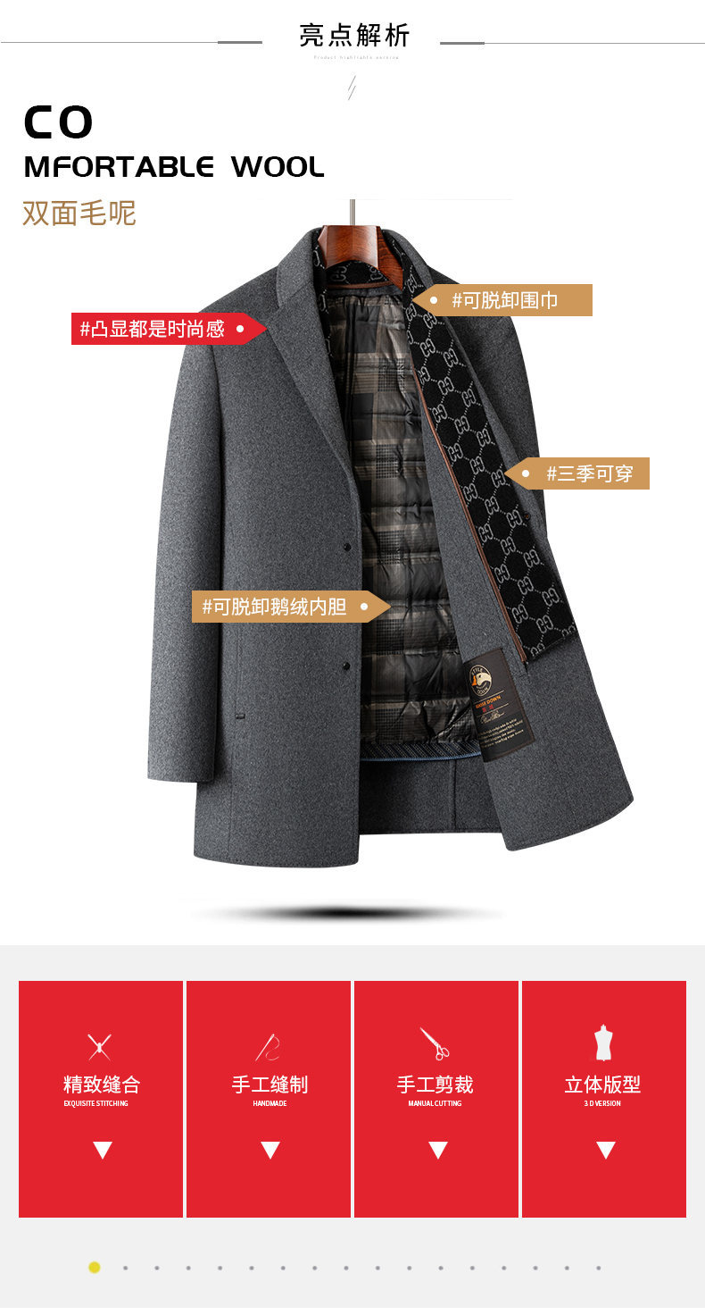 남자 해체 스카프 칼라 울 코트 2024 겨울 새 남자 중년 제거 거위 다운 라이너 코트스토어 가기