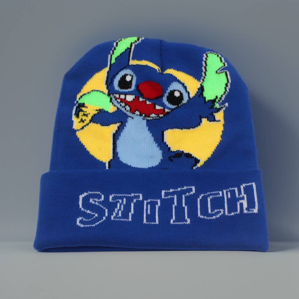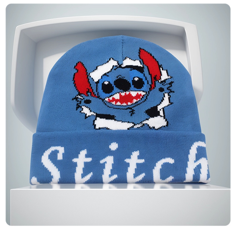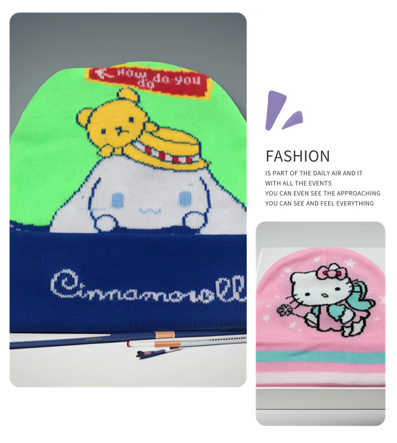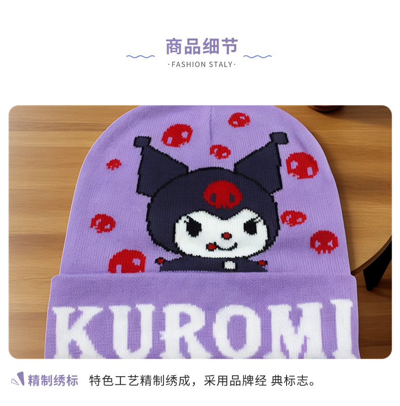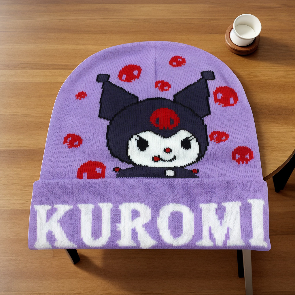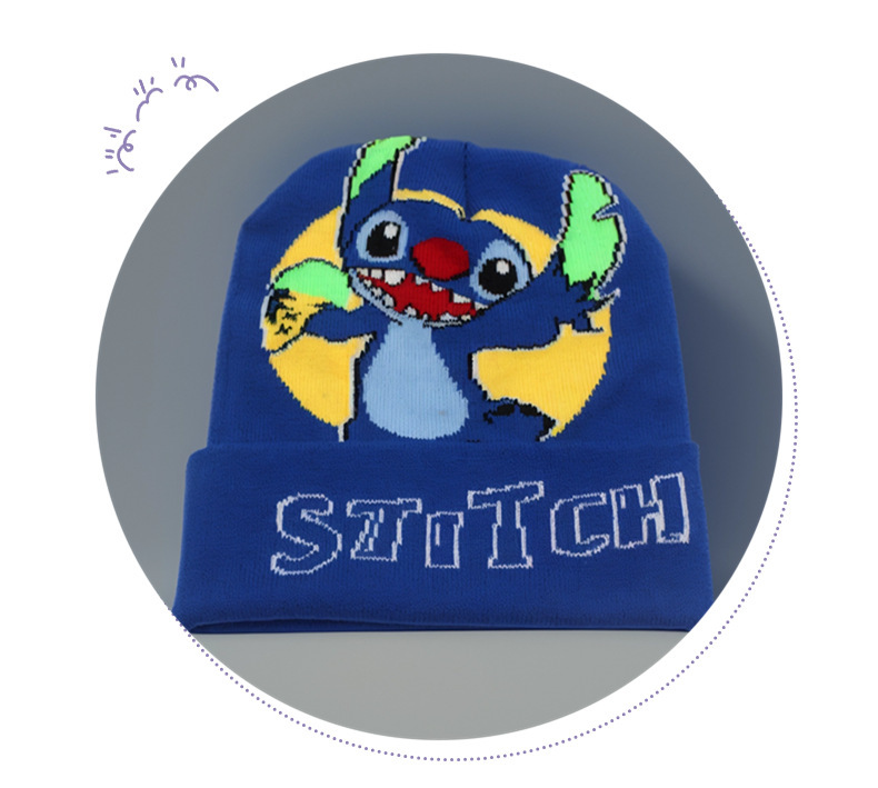 가을과 겨울 새로운 Kulomi 스티치 자카드 니트 모자 애니메이션 만화 산리오 따뜻한 풀오버 울 모자