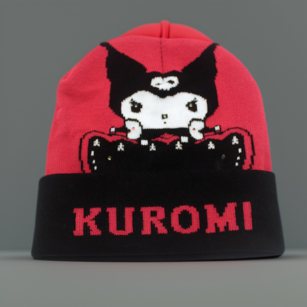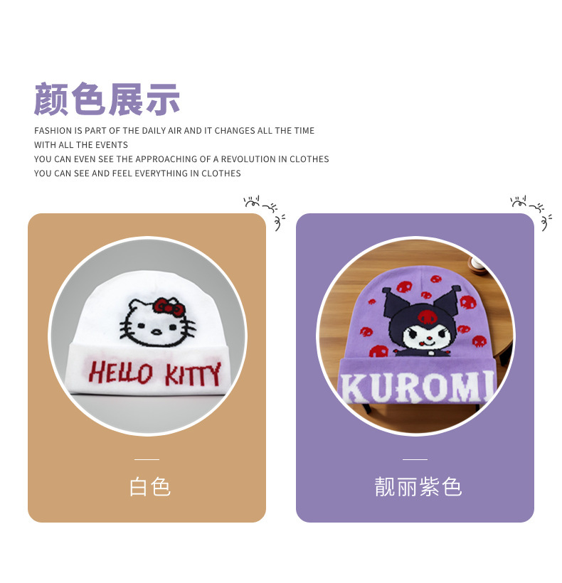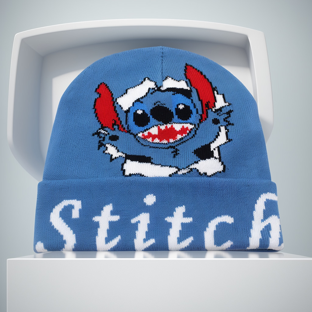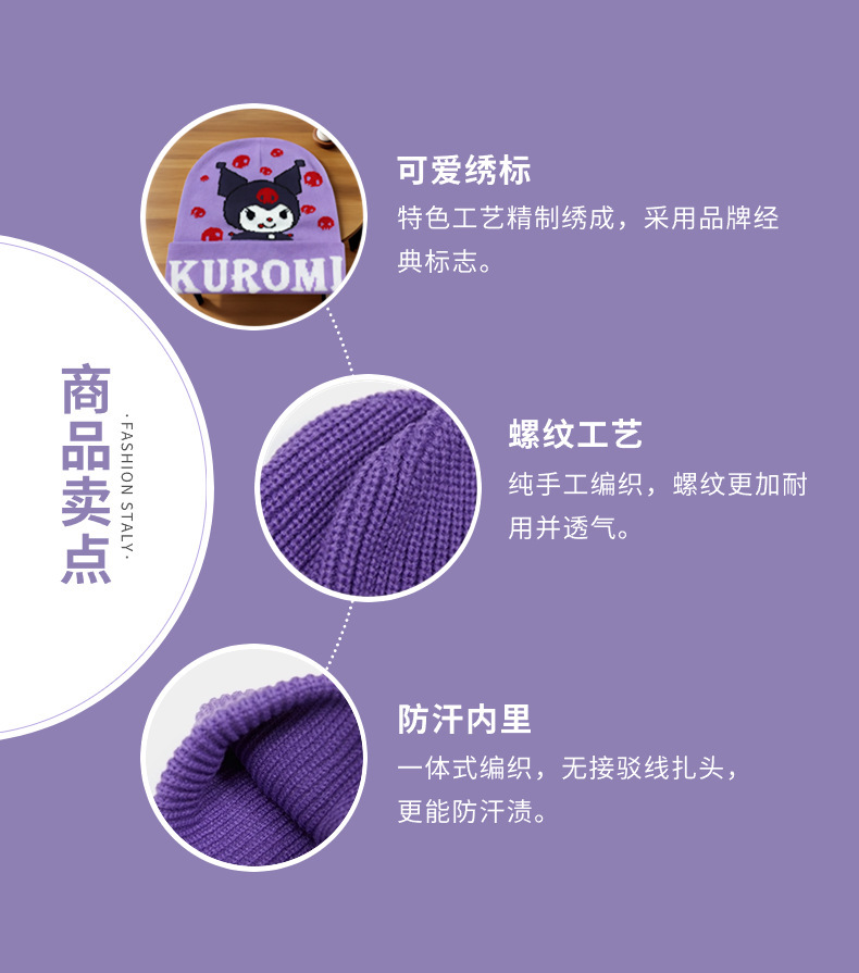가을과 겨울 새로운 Kulomi 스티치 자카드 니트 모자 애니메이션 만화 산리오 따뜻한 풀오버 울 모자