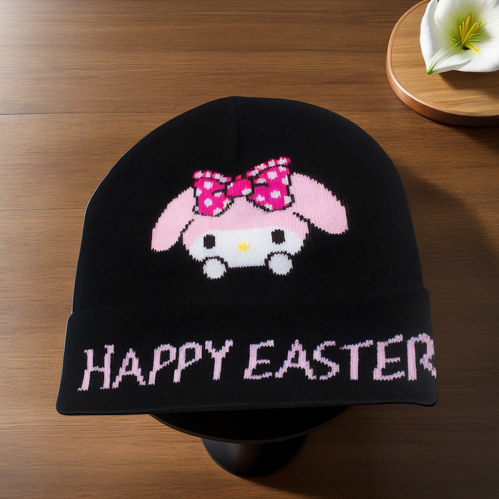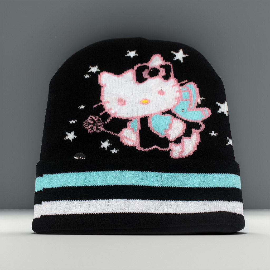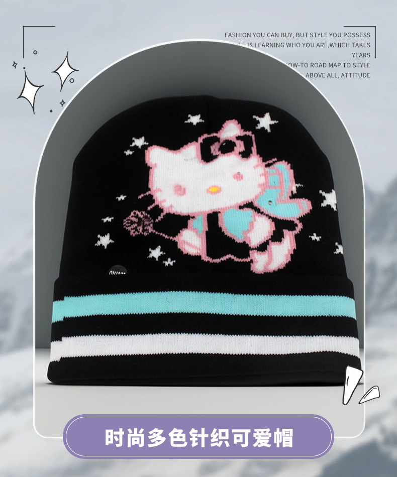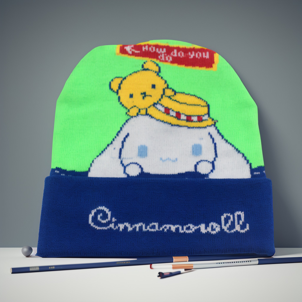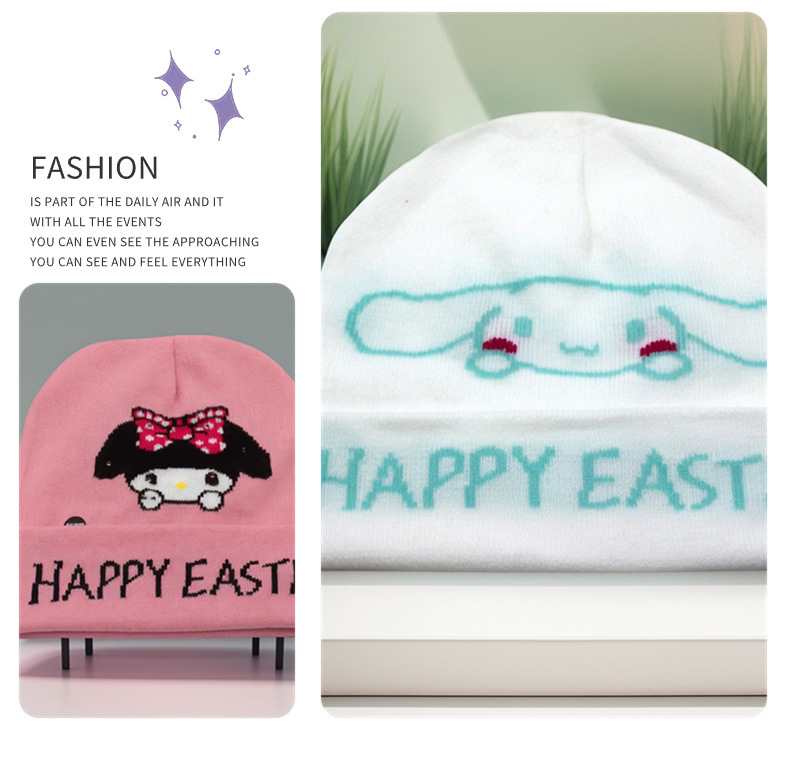 가을과 겨울 새로운 Kulomi 스티치 자카드 니트 모자 애니메이션 만화 산리오 따뜻한 풀오버 울 모자