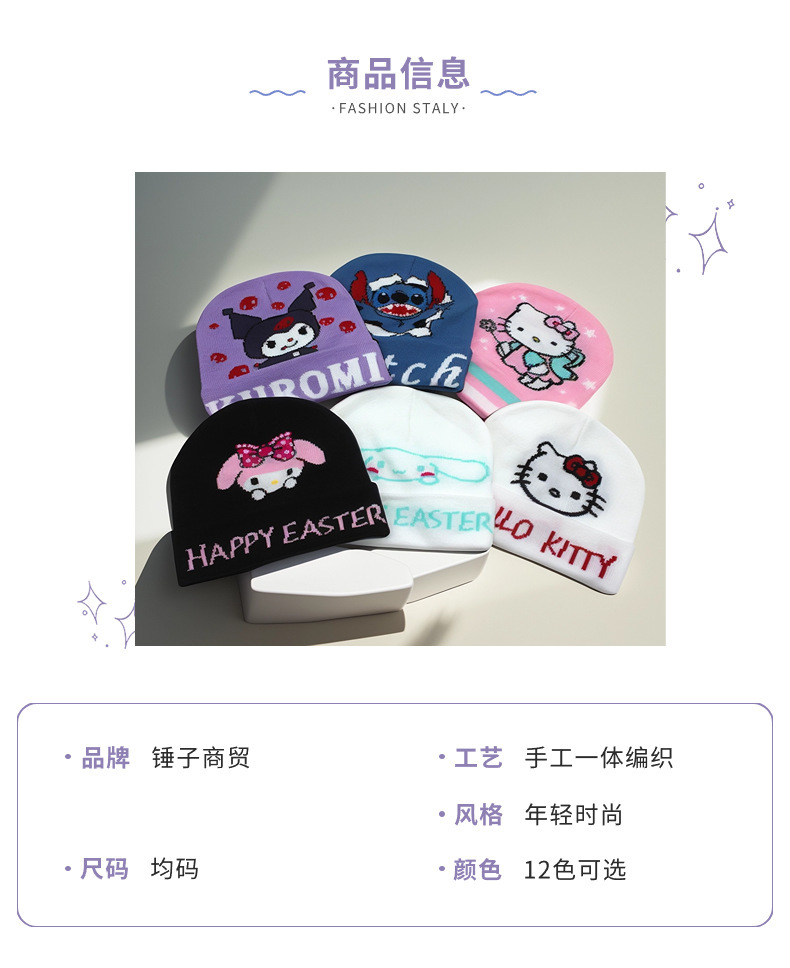 가을과 겨울 새로운 Kulomi 스티치 자카드 니트 모자 애니메이션 만화 산리오 따뜻한 풀오버 울 모자스토어 가기