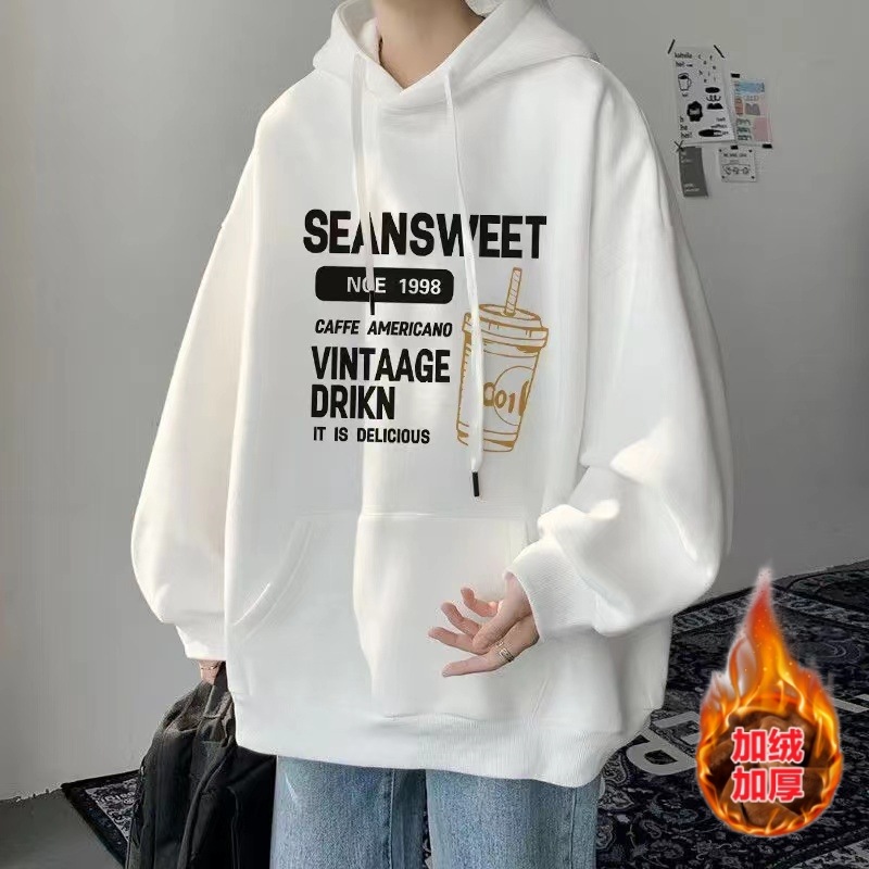 남자의 가을 새로운 후드 스웨트 셔츠 남자의 겨울 기모 두꺼운 미국 유행 느슨한 캐주얼 자켓 남성 패션스토어 가기