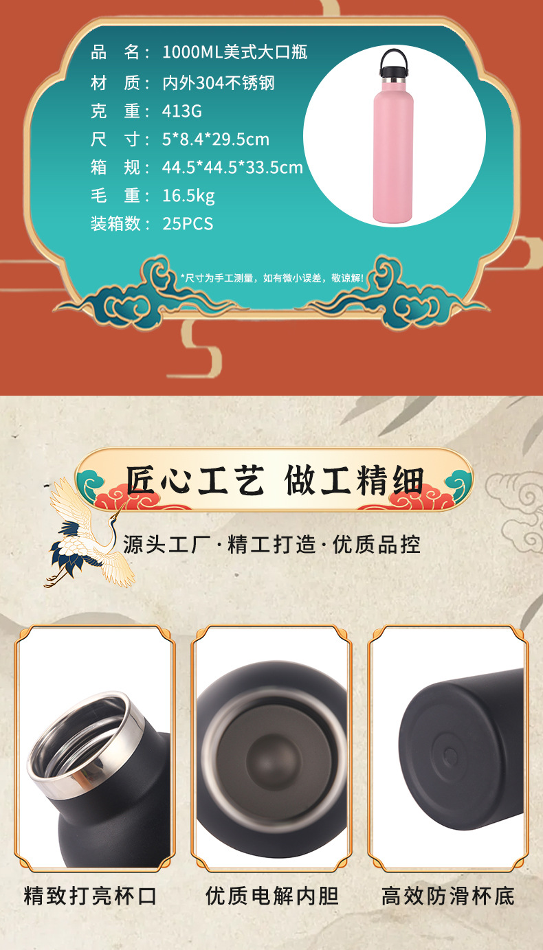 국경 간 폭발 미국 스타일 큰 입 병 304 스테인레스 스틸 대용량 보온병 야외 스포츠 휴대용 등산 워터 컵