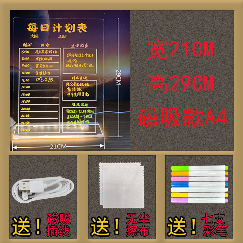 • 마그네틱 A4 크기에는 7가지 컬러 펜 + 청소용 천 + 마그네틱 케이블(USB 플러그인)이 포함되어 있으며 데스크탑 디스플레이에 적합합니다.