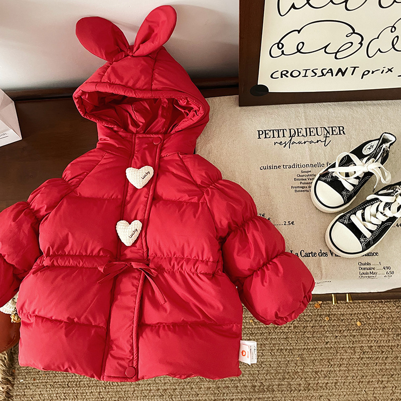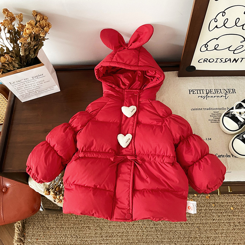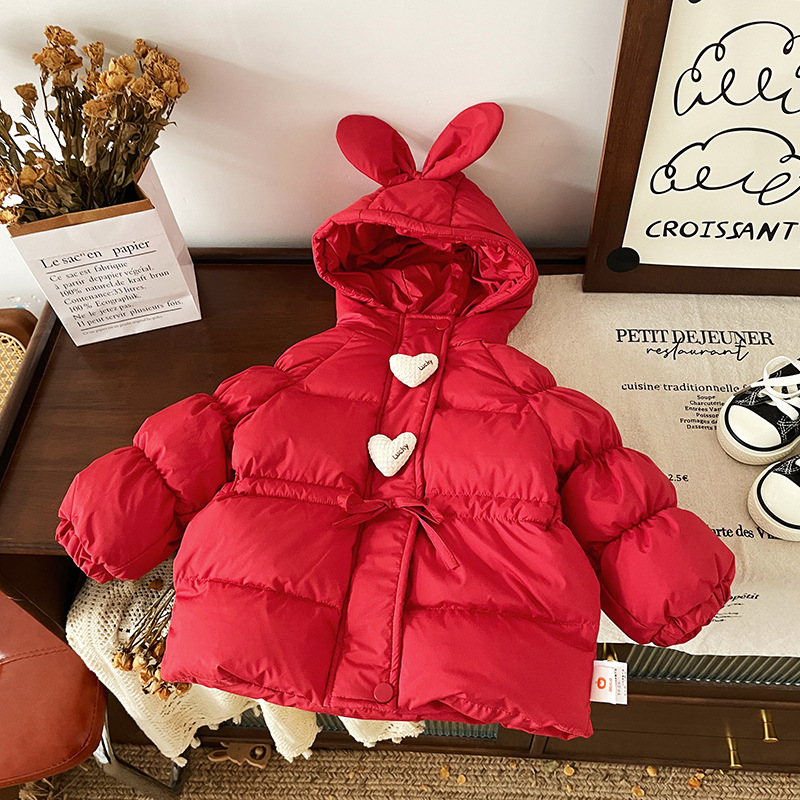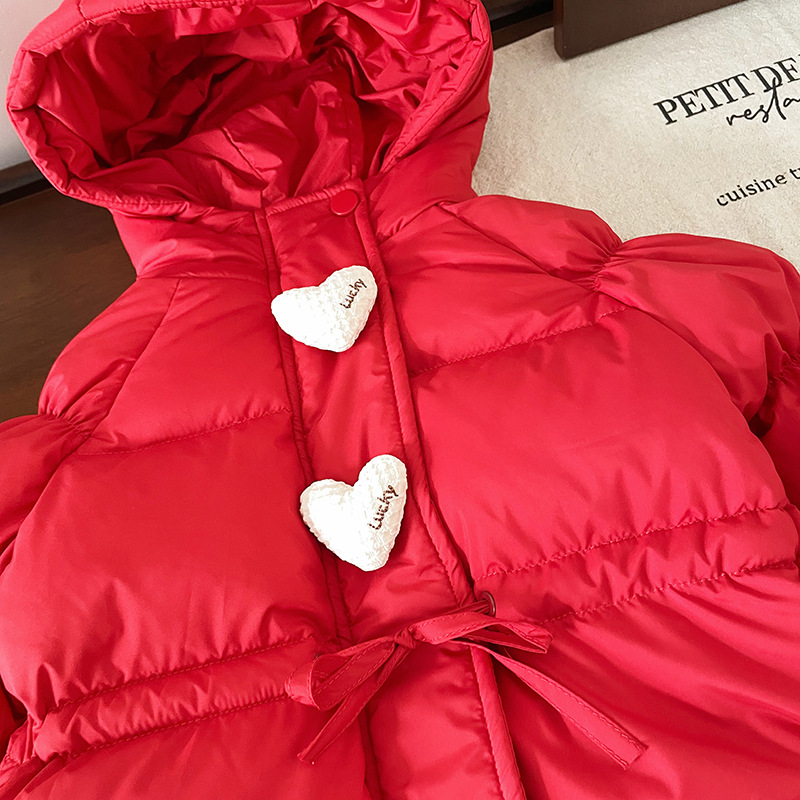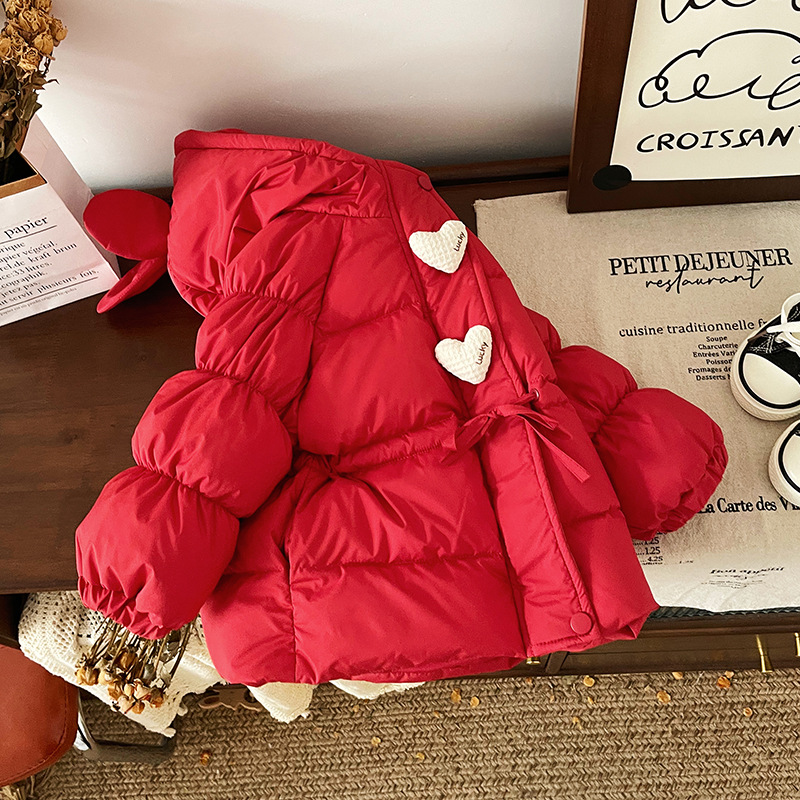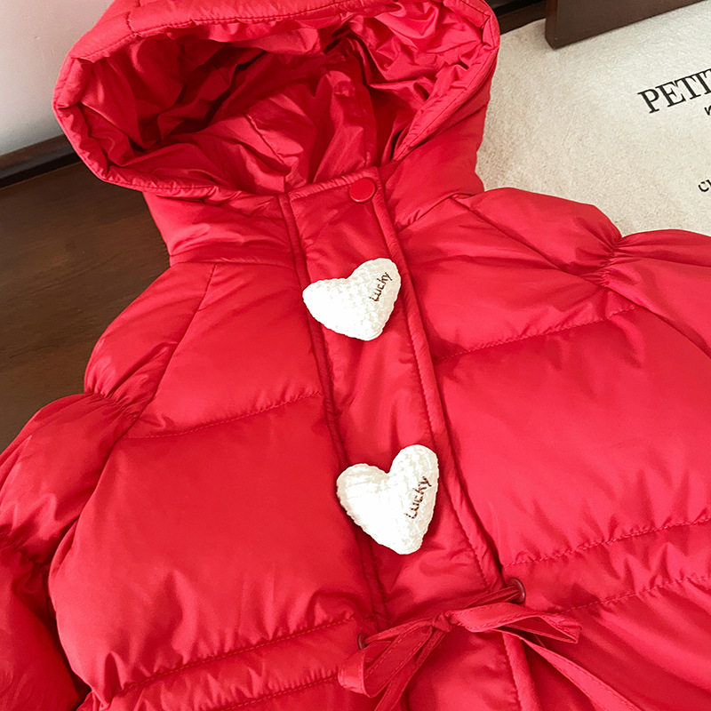 [재고] DW246970 어린이 다운 재킷 2024 겨울 새 소녀 사랑 레드 다운 재킷