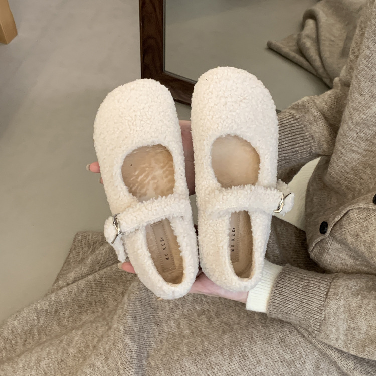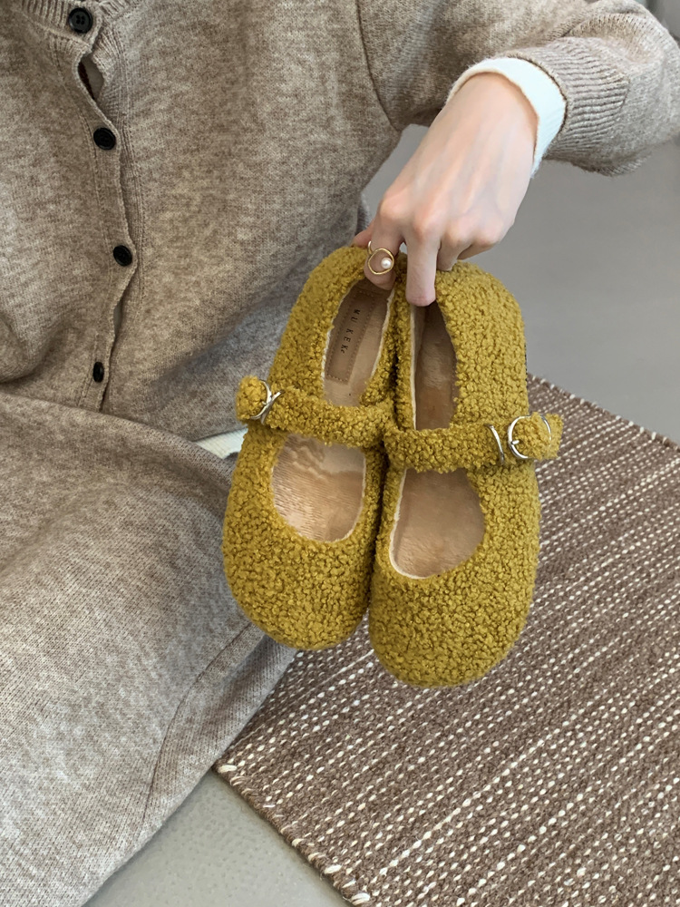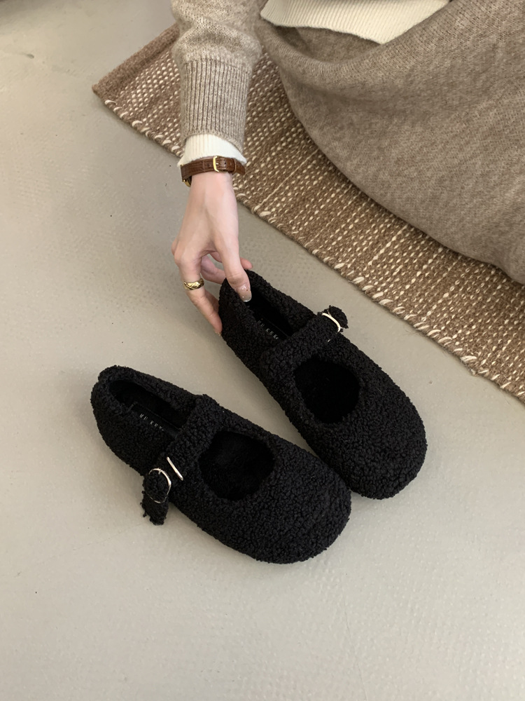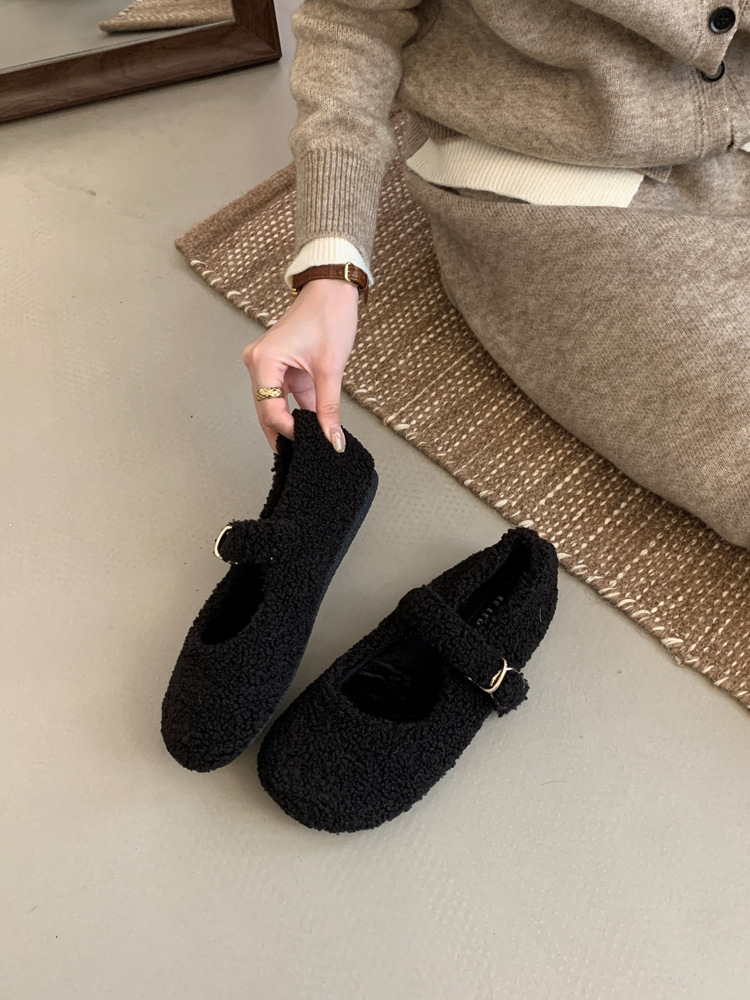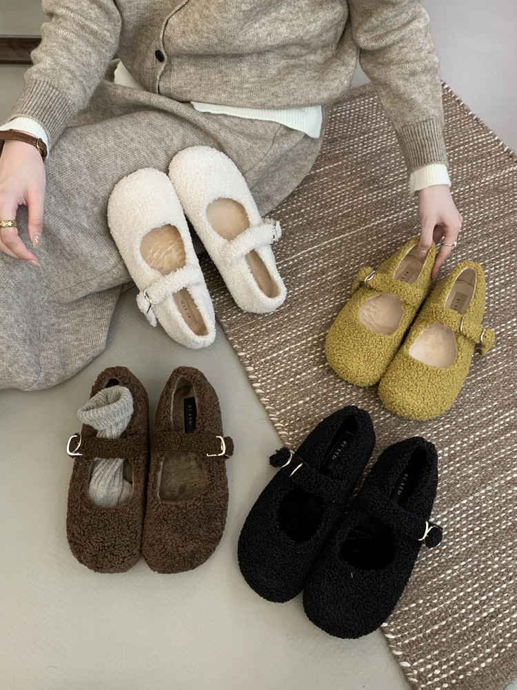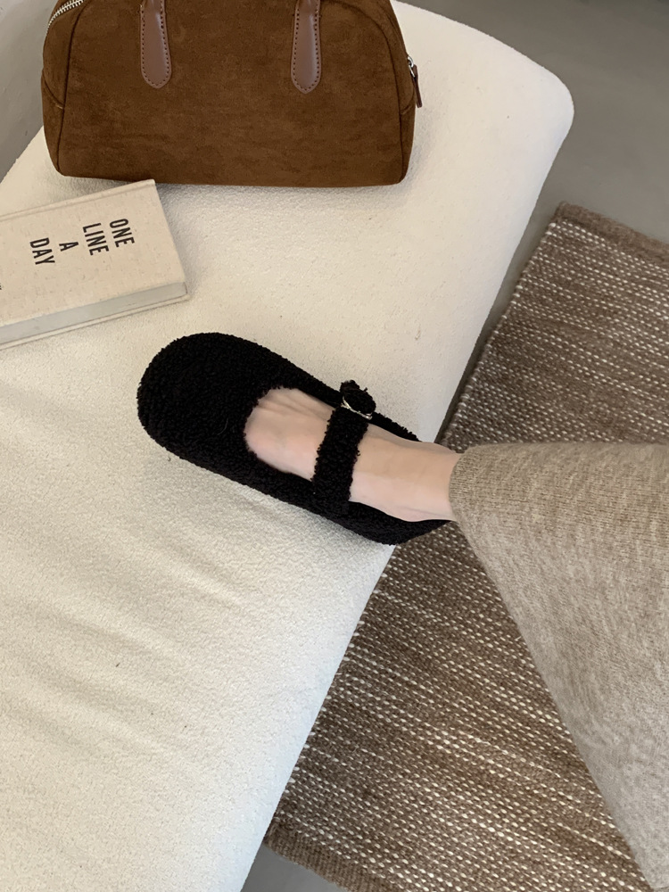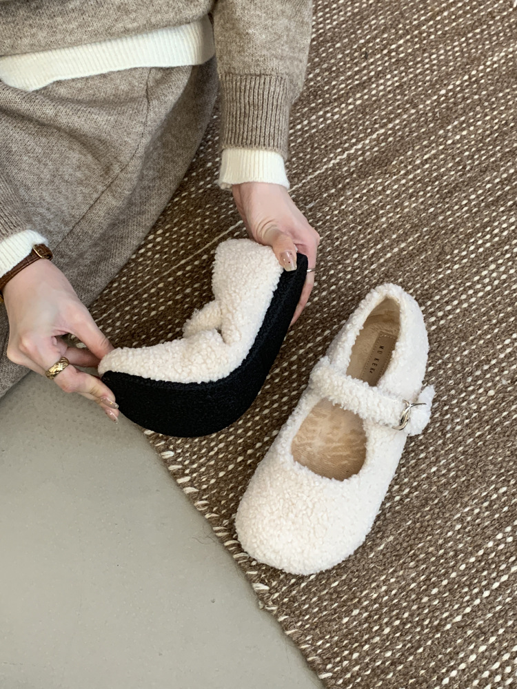 빈티지 마오 마오 마오 마오 신발 여성 가을 및 겨울 외부 착용 새로운 프랑스 스타일 우아한 요정 스타일 싱글 레이어 신발 기모 플랫 메리 제인 코튼 신발스토어 가기