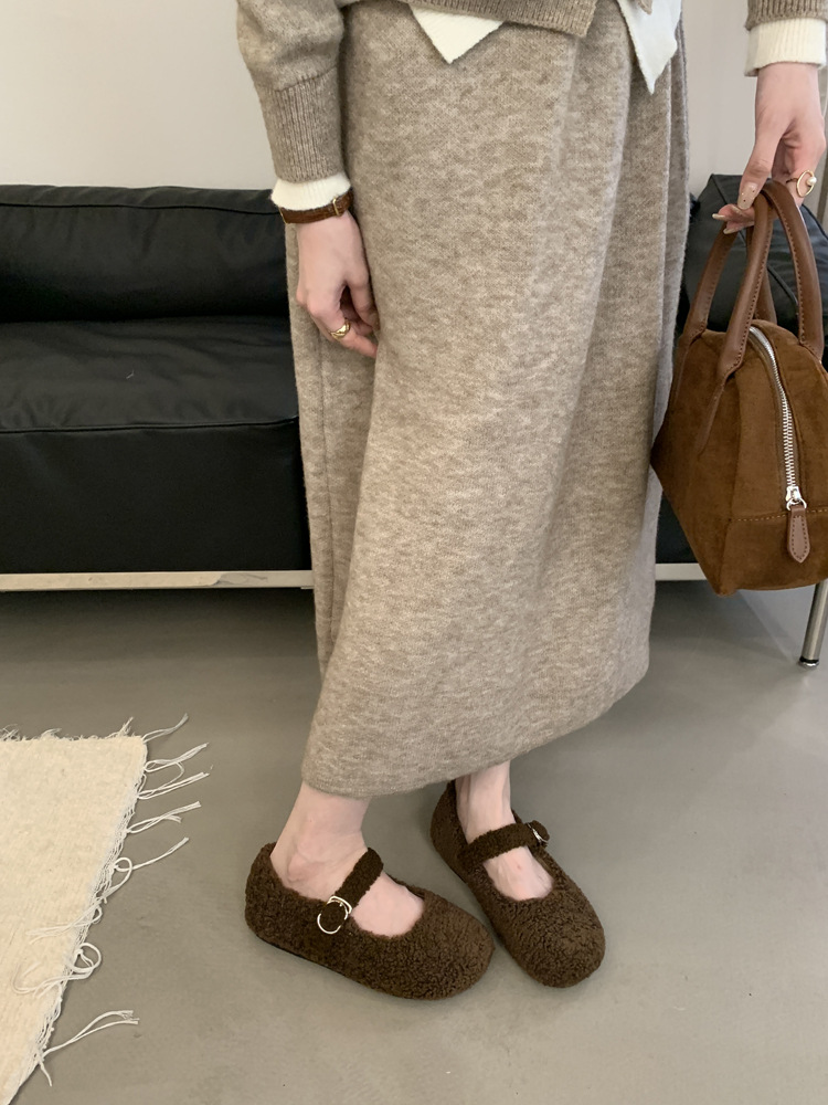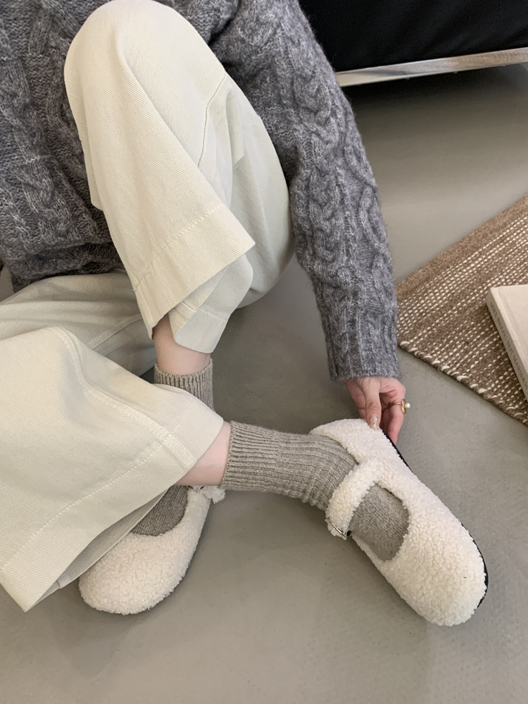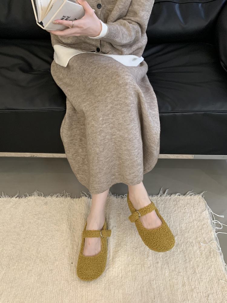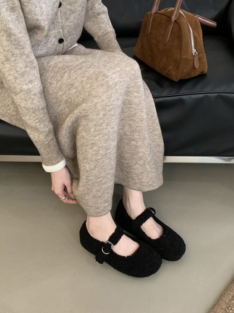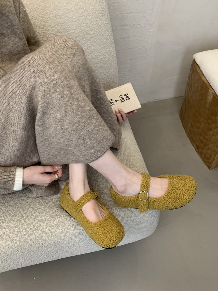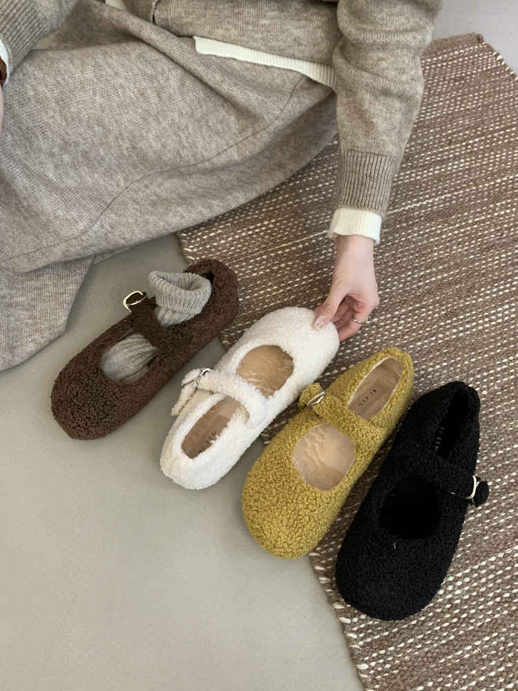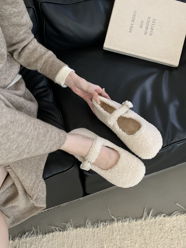 빈티지 마오 마오 마오 마오 신발 여성 가을 및 겨울 외부 착용 새로운 프랑스 스타일 우아한 요정 스타일 싱글 레이어 신발 기모 플랫 메리 제인 코튼 신발스토어 가기