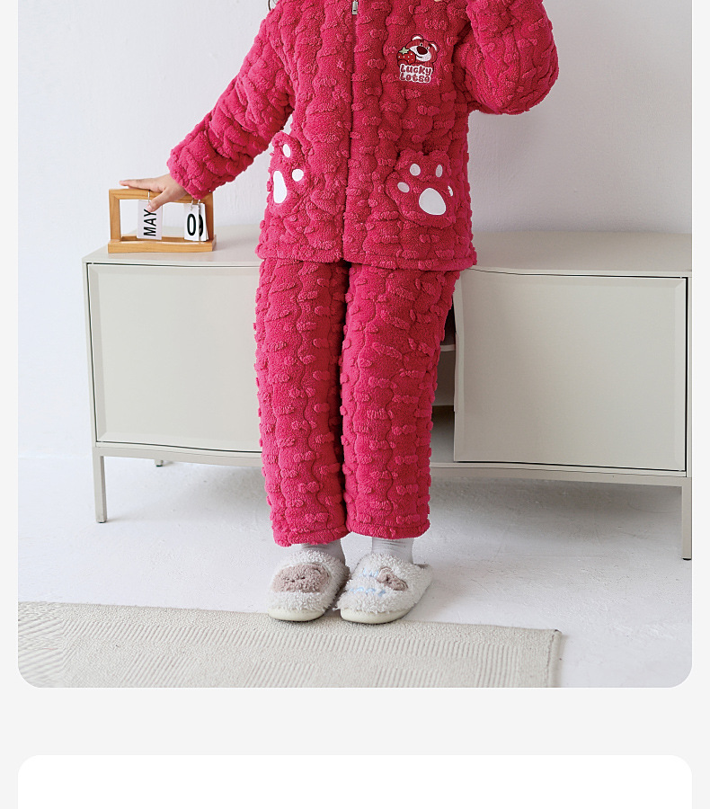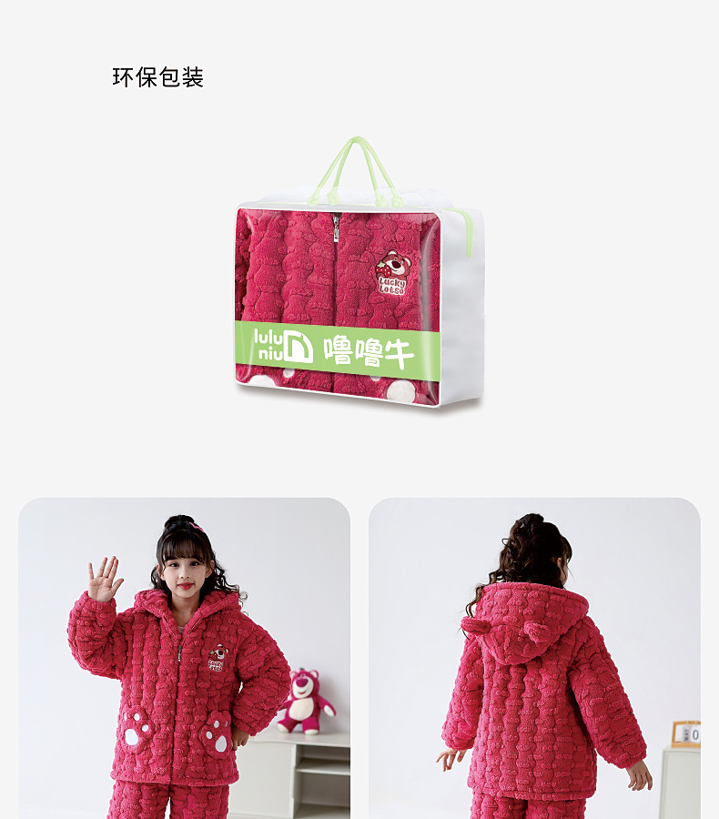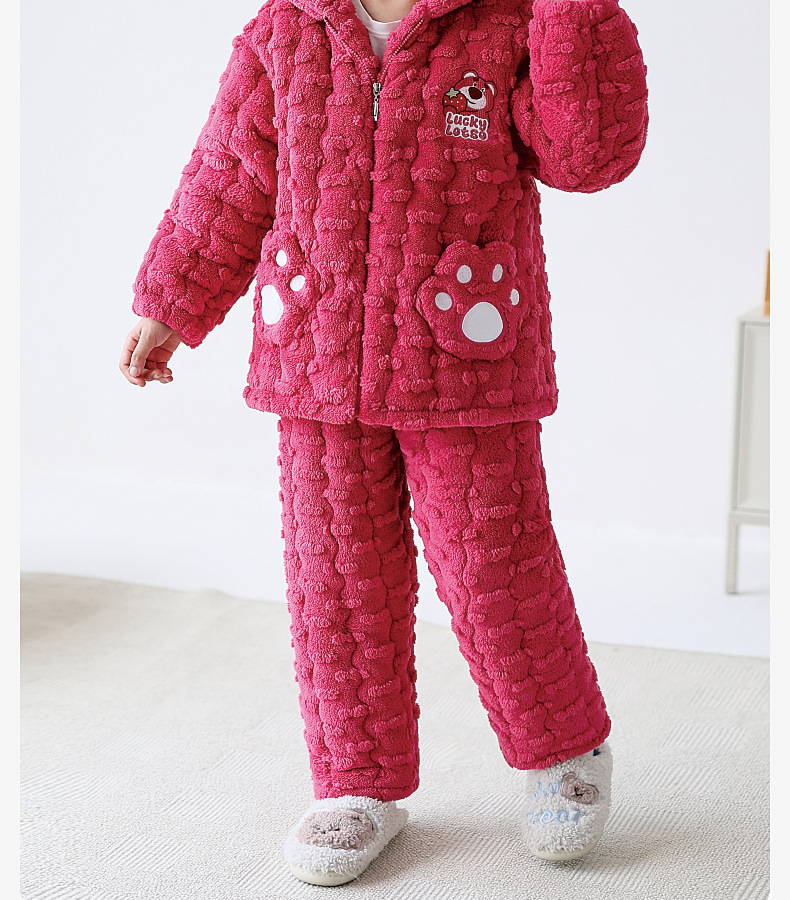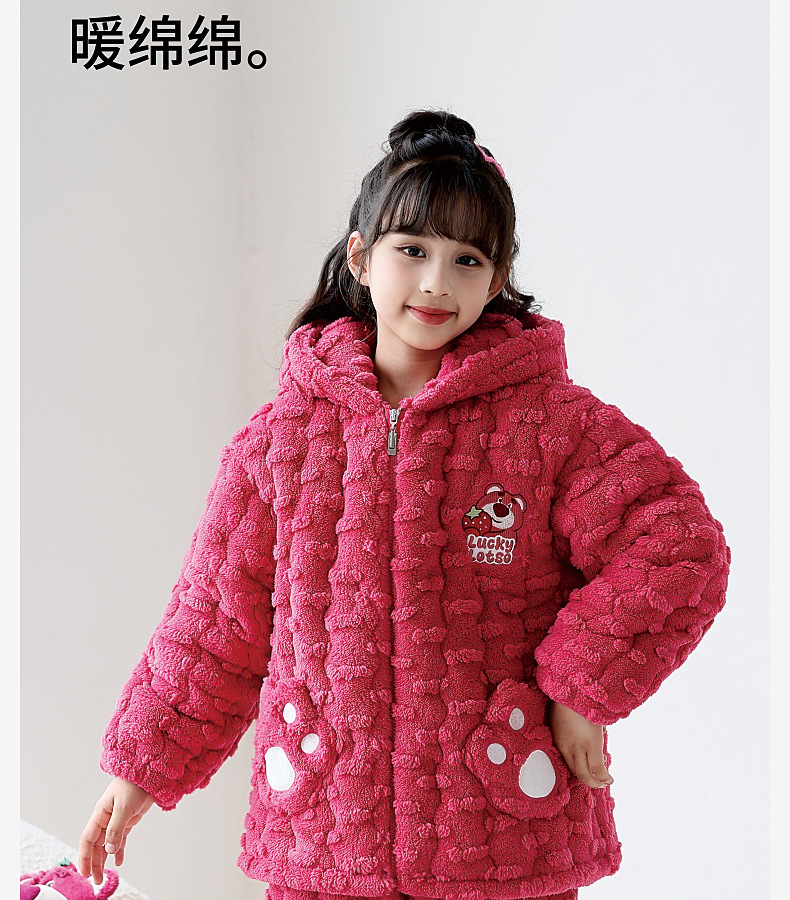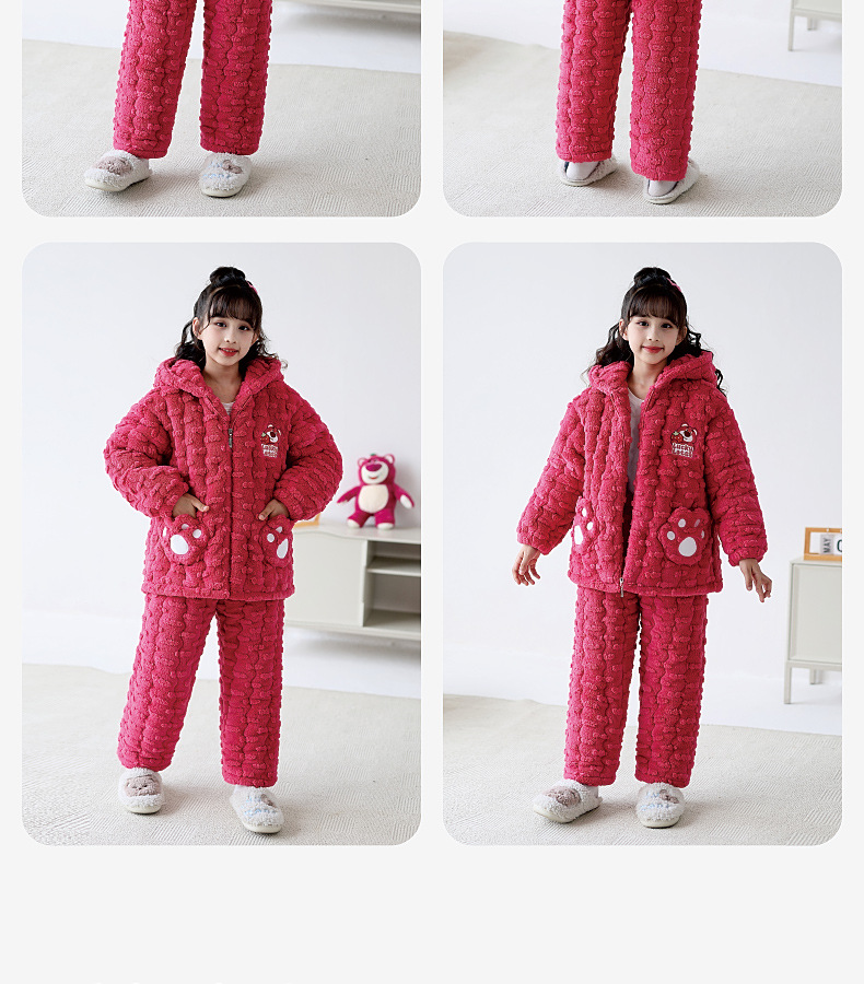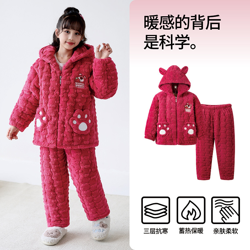 룰루 소 어린이 파자마 겨울 소녀 산호 양털 3 층 면 두꺼운 따뜻한 소녀 중 큰 어린이 가정 옷스토어 가기
