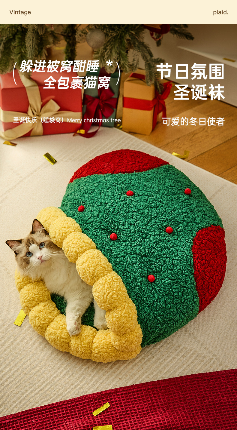 가을과 겨울 따뜻한 고양이 둥지 깊은 수면 반 폐쇄 개 사육장 따뜻한 침대 새로운 크리스마스 고양이 둥지 도매스토어 가기