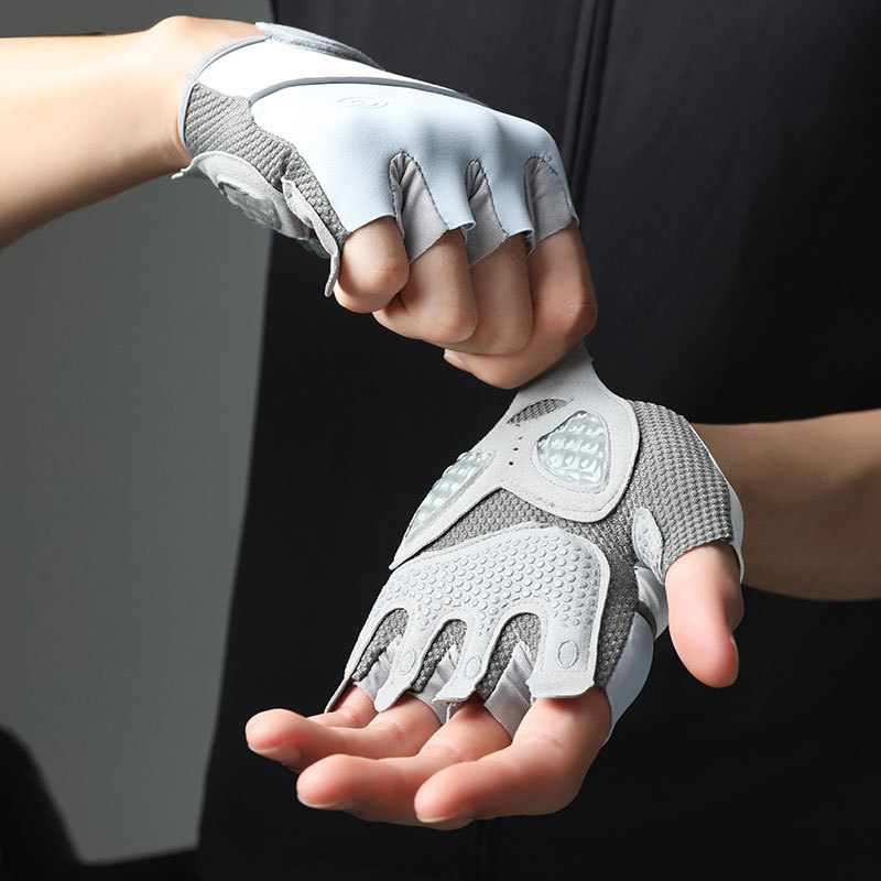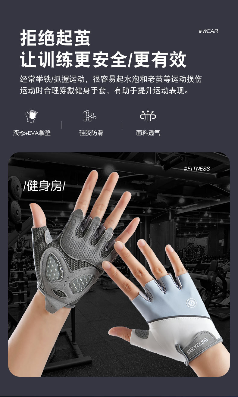 남성과 여성을위한 피트니스 장갑 야외 승마 통기성 아이스 실크 미끄럼 방지 마모 사랑 액체 실리콘 스포츠 반 손가락 장갑