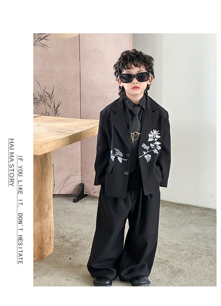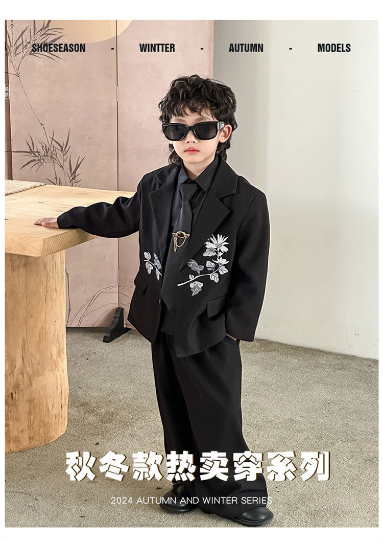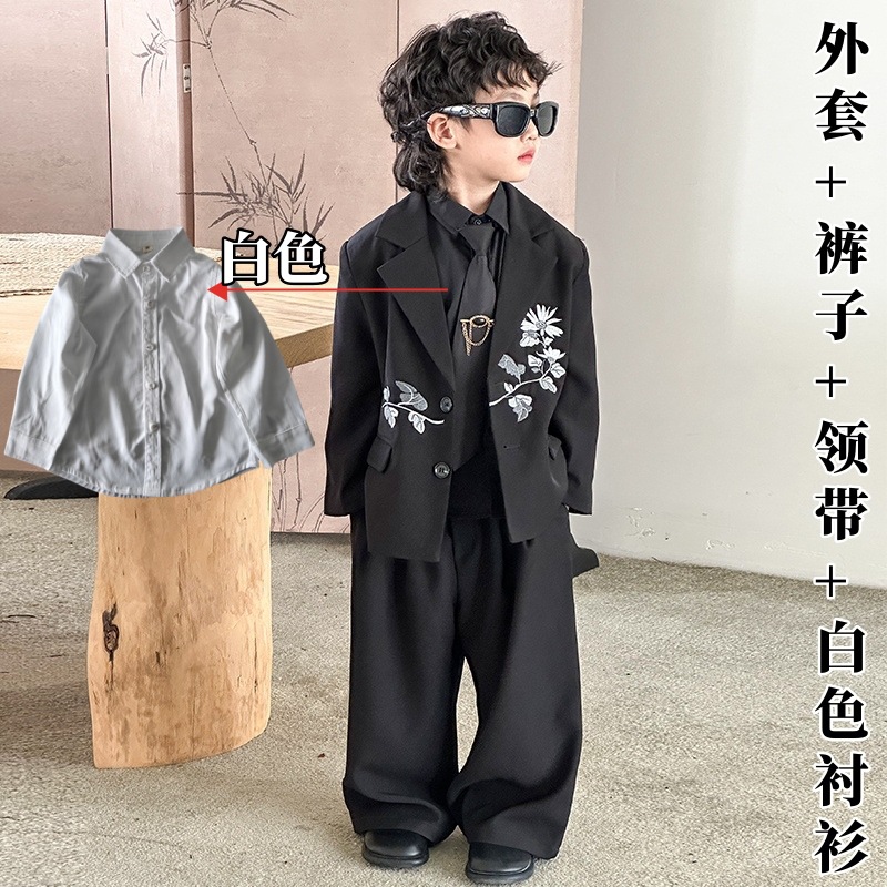 새로운 중국 스타일 소년 세트 세트 2024 가을 새로운 어린이 캐주얼 세트 보이 모델 쇼 공연 세트스토어 가기