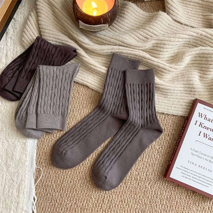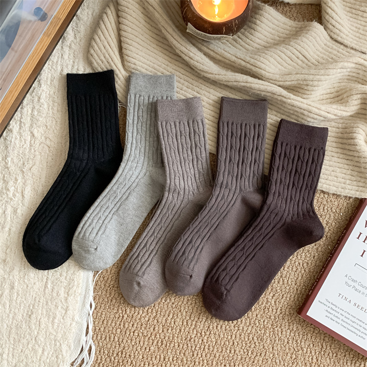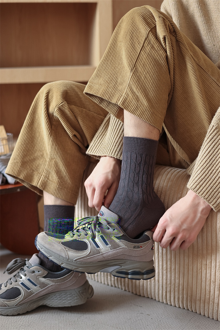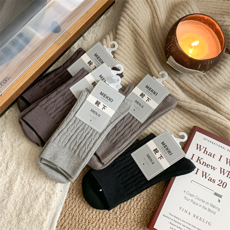 가을 겨울 신상 남성용 양모 양말 탄성 섬유 두꺼운 꼬임 스트립 캐주얼 남성 양말스토어 가기