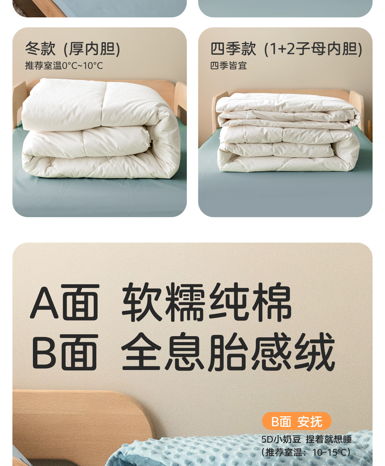 • 150x200cm 대두섬유( 0.9kg + 1.5kg ) 사계절 이불심 + 비니이불