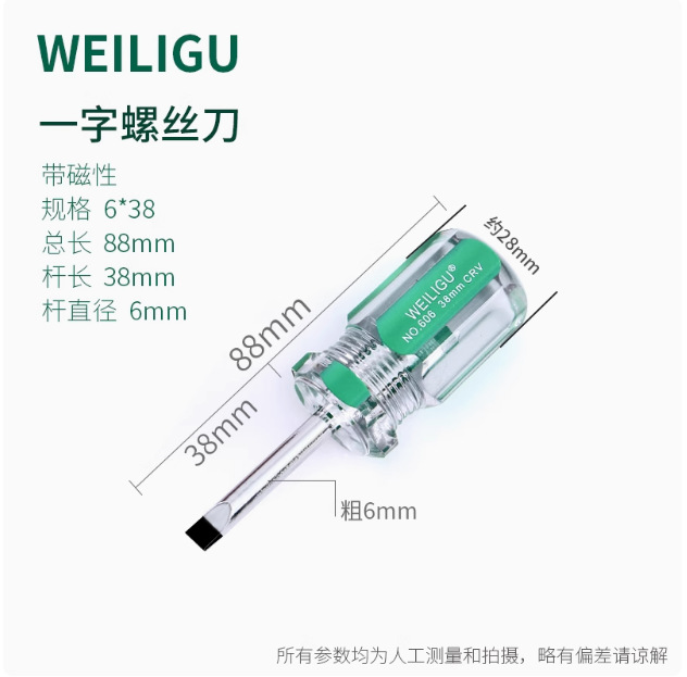 전원 단색로드 플랫 헤드 필립스 드라이버 크리스탈 핸들 스크류 드라이버 플랫 스크루 드라이버 자석 38-300mm 길이