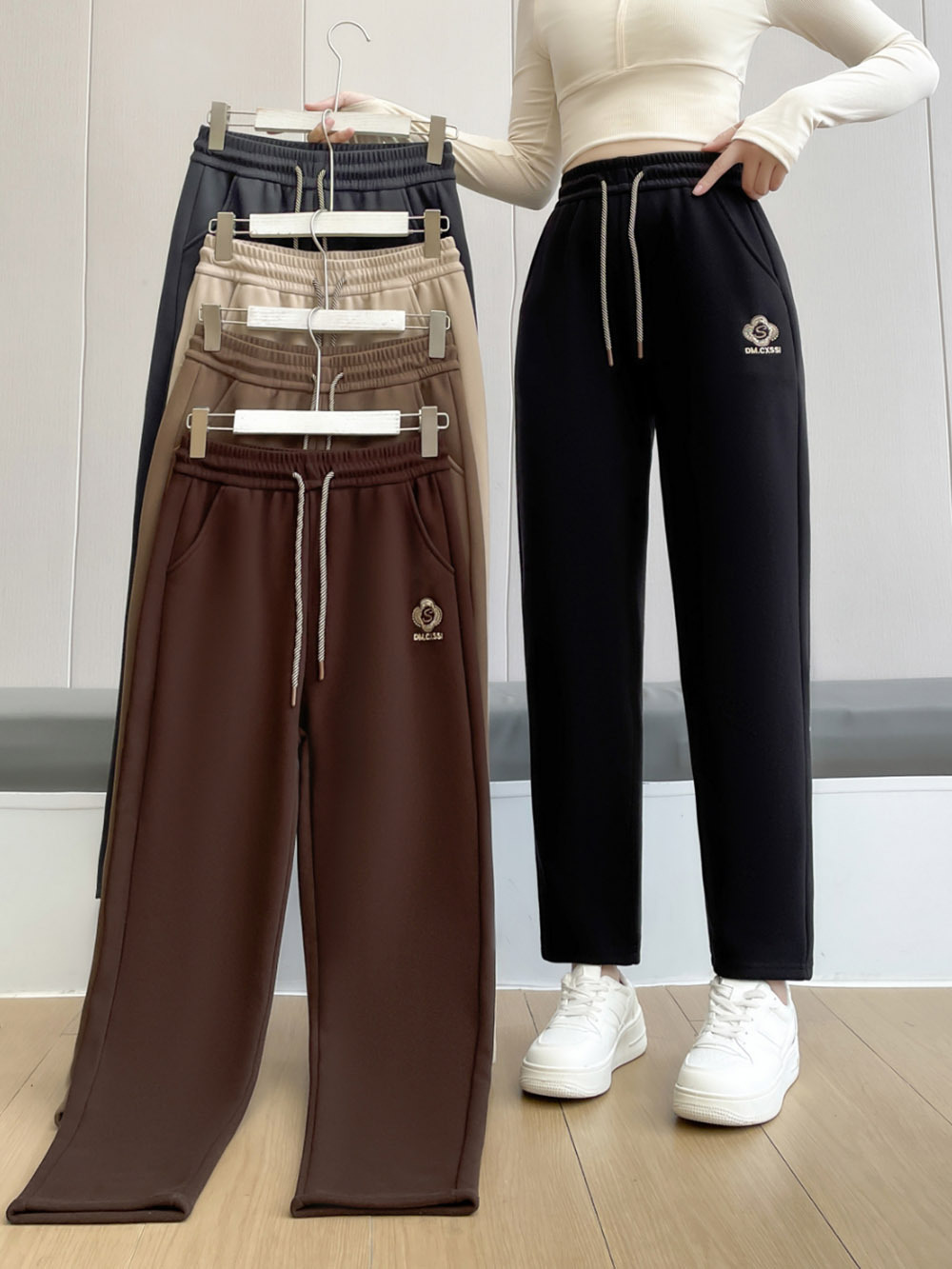 防风裤女秋冬新款加绒刺绣高腰休闲卫裤中老年妈妈裤江湖地摊展会