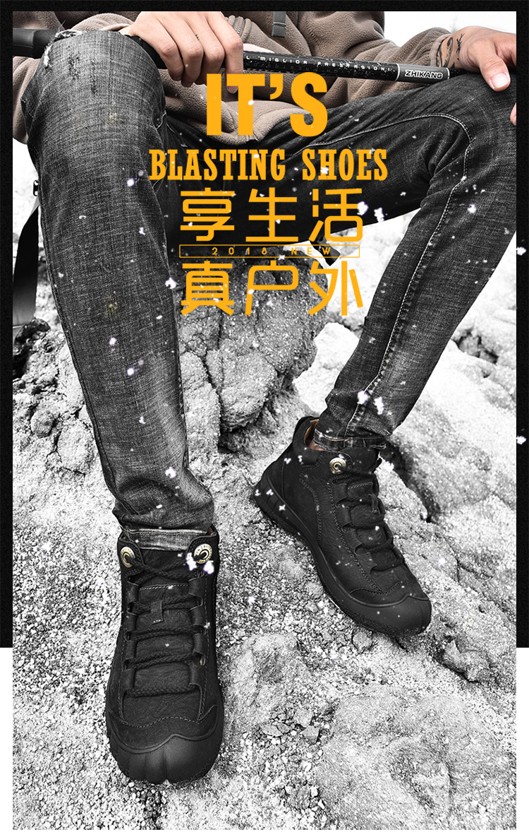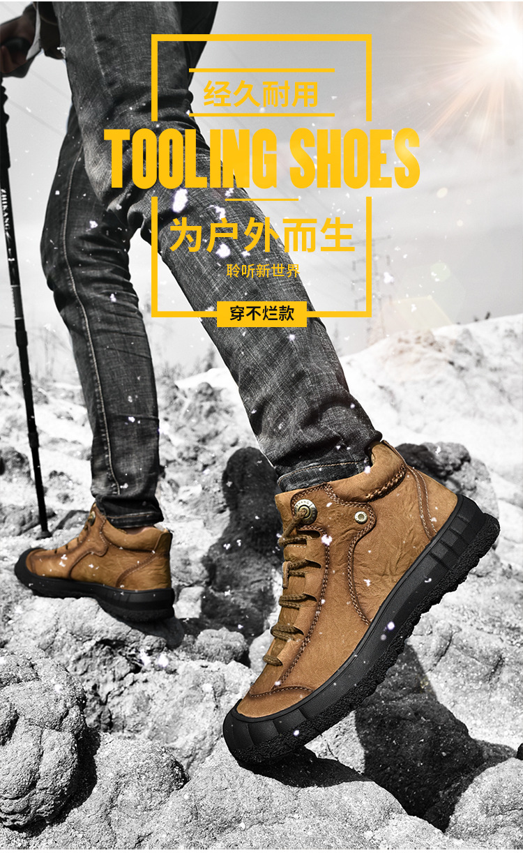 작업복 신발 남성 2024 가을/겨울 새로운 정품 가죽 중간 도움 남성 신발 Baotou 킥 방지 야외 캐주얼 등산 신발 플러스 사이즈 46스토어 가기