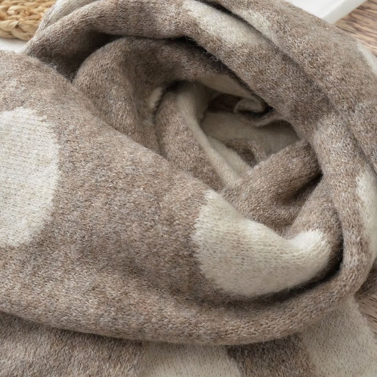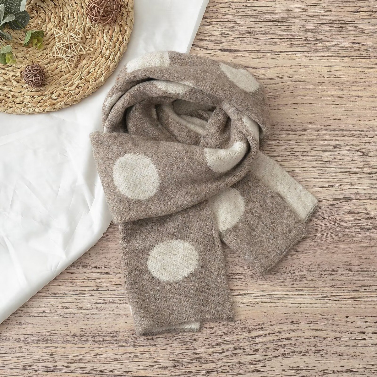 동대문 일본 대학 스타일 대형 라운드 도트 양면 자카드 울 블렌드 니트 스카프 여성 따뜻한 목 목도리스토어 가기