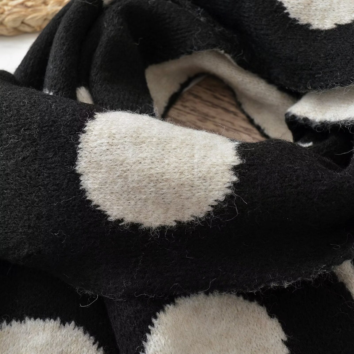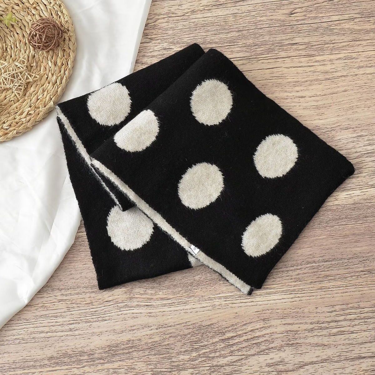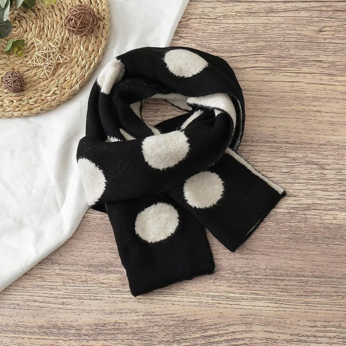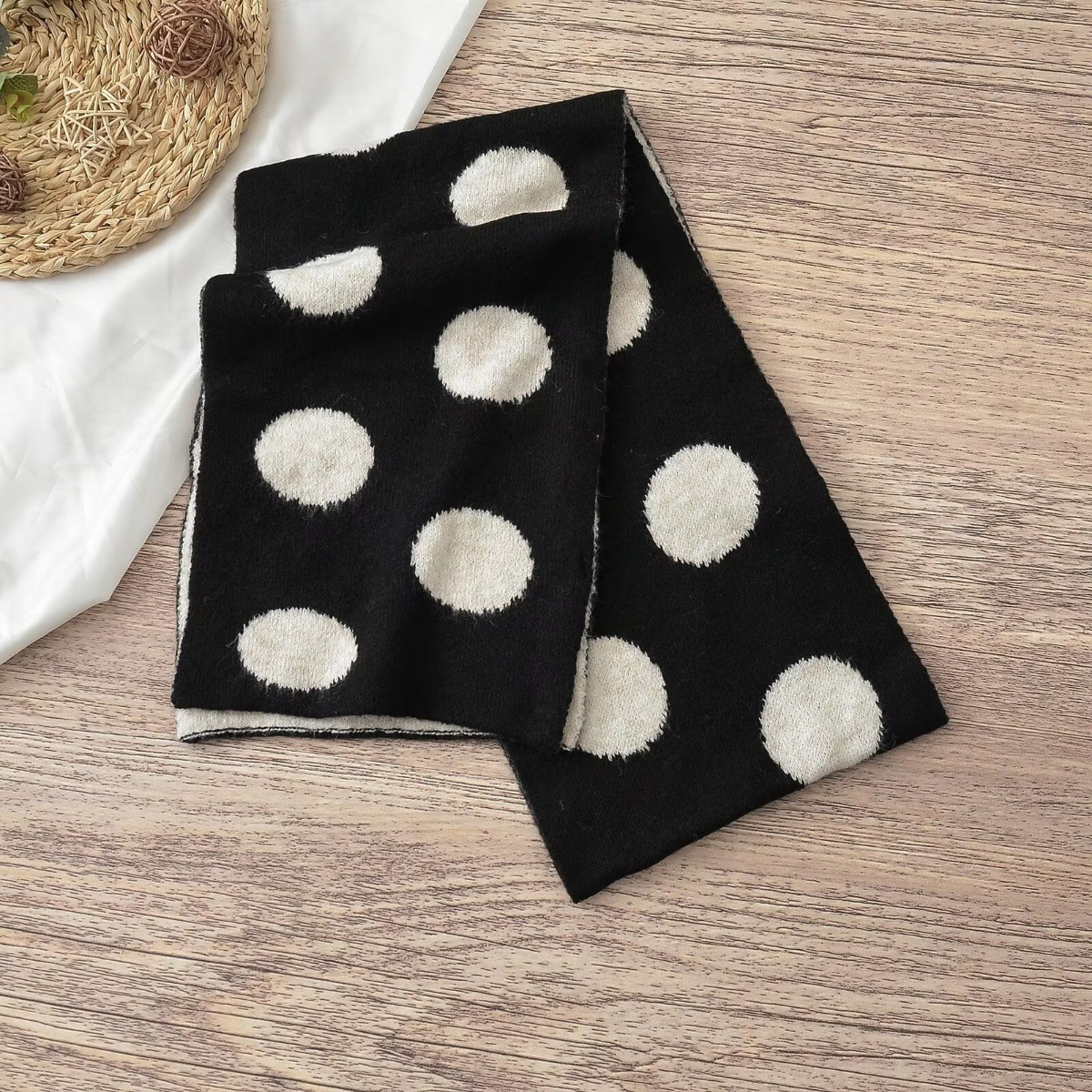 동대문 일본 대학 스타일 대형 라운드 도트 양면 자카드 울 블렌드 니트 스카프 여성 따뜻한 목 목도리